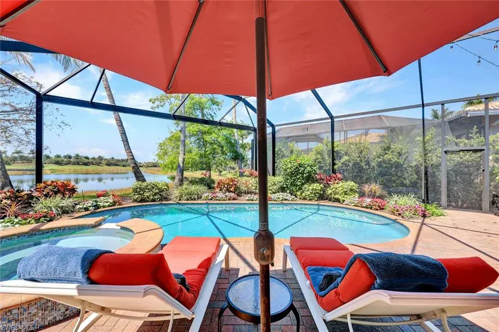 Outdoor living is equally impressive. A picture-frame lanai cage (2018) frames unobstructed golf (10th green) and water views, while the pool and spa were fully refurbished in 2018. A new pool pump (2024) adds further reliability. This home is move-in ready with thoughtful enhancements inside and out.