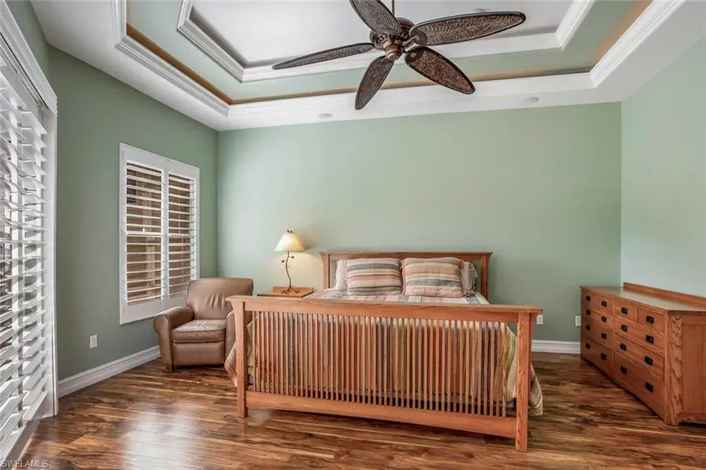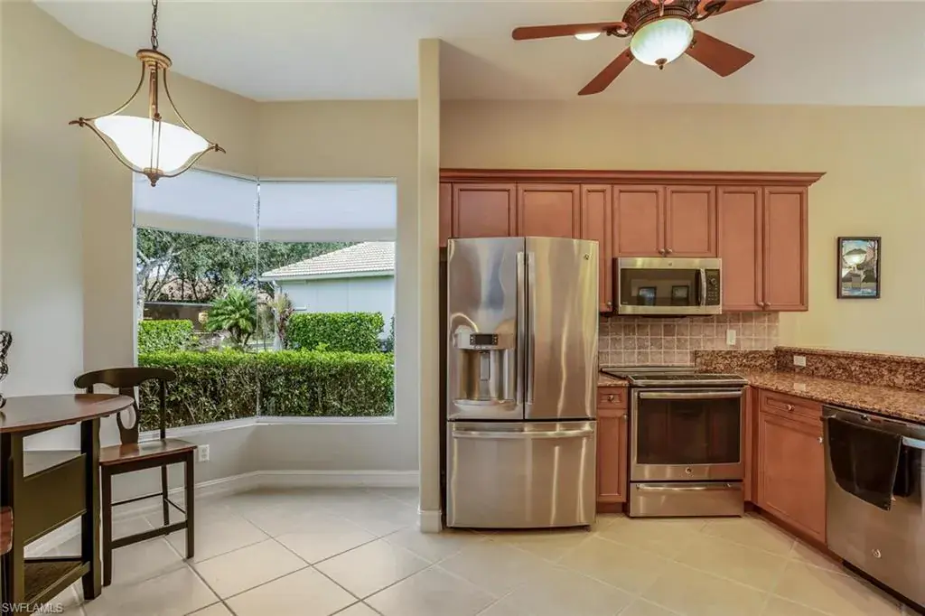 Front Entrance !!! Spectacular Golf Course View of the 5th Fairway, with a large side lot for privacy. 3Br/2Ba. pool villa, Great room floor plan with tray ceilings, sliding glass doors to lanai. Kitchen offers extra cabinetry, granite countertops, stainless appliances, tile backsplash, and seamless corner window. Primary suite offers tray ceilings, wood flooring, sliding glass doors w/ plantation shutters to lanai, separate his/her walk-in closets, separate vanities, large soaking tub & walk-in shower. New LV flooring in third bedroom. Paver deck lanai, heated pool overlooking the Golf Course. Olde Cypress is a low-density gated community with 550 single family homes, located in North Naples, the Social Membership allows residents to use the clubhouse facilities which include club activities, fine & casual dining, tennis, pickleball, swimming pool, fitness and meeting rooms. Residences of the community may enhance their privileges by upgrading to a Golf Membership on the prestigious P.B Dye 18-hole designed course. There is a new Clubhouse renovation taking place that will put Olde Cypress in a class of its own. Olde Cypress is located just off I-75, allowing easy access to Fort Myers airport, numerous restaurants, beaches and shopping