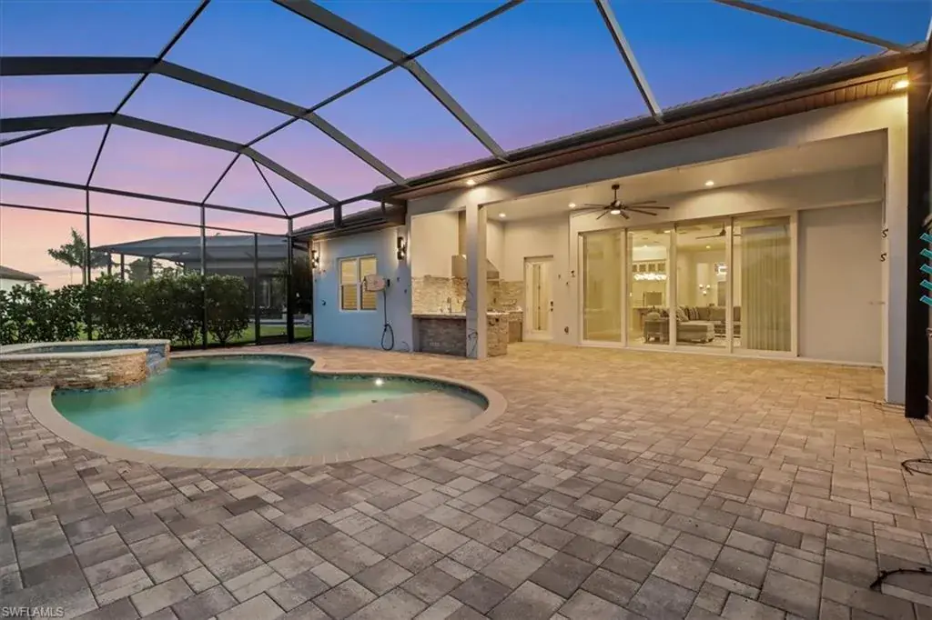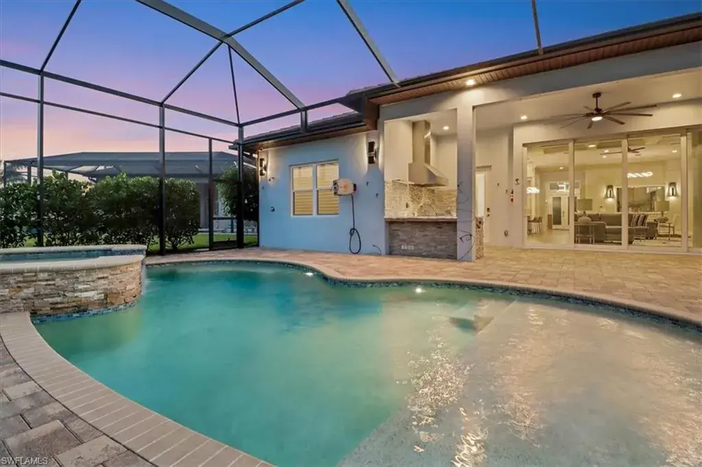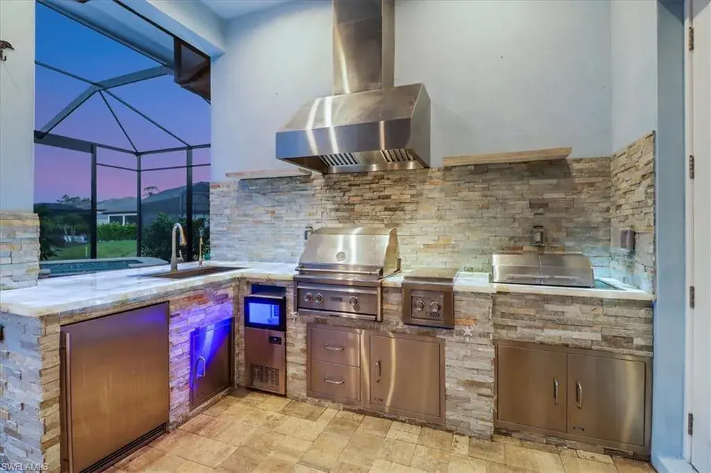 Enjoy breathtaking lake views from your private pool and spa, or entertain in style with a resort-inspired outdoor kitchen, complete with glowing quartzite countertops and built-in features designed for elevated alfresco living.