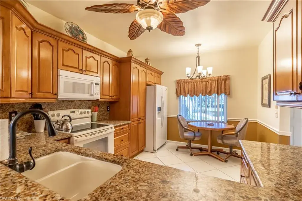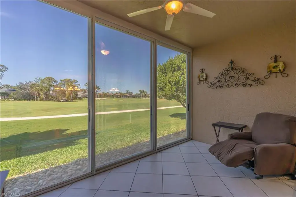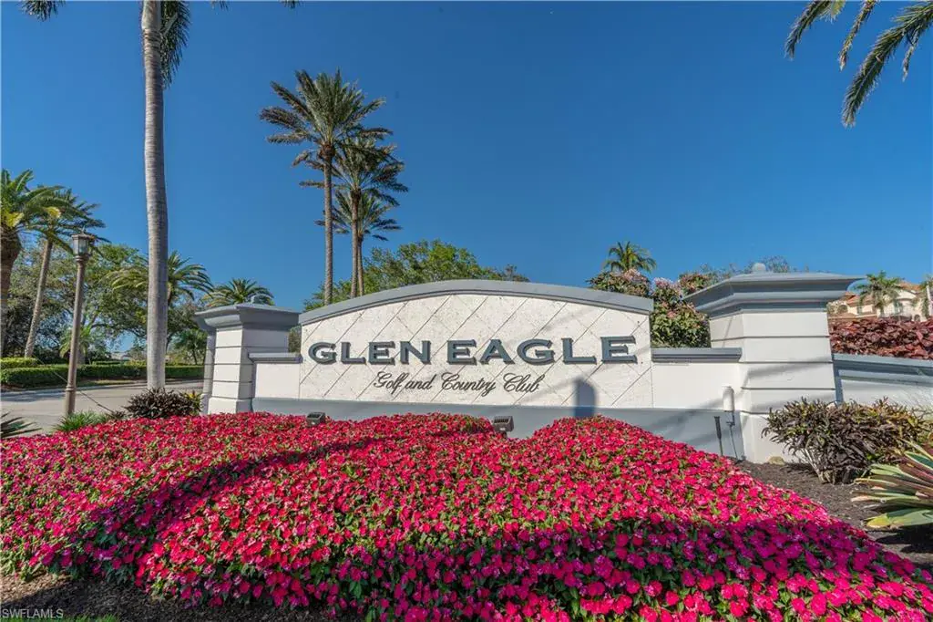 -MOTIVATED SELLER BRING ALL OFFERS-VACANT AND EASY TO SHOW—FULL GOLF MEMBERSHIP–IMPACT GLASS LANAI SLIDERS / CUSTOM KITCHEN CABINETS -Location, Location, Location! Amazing !! Welcome to Building A in the highly sought-after Glen Eagle Golf & Country Club at Saratoga Colony in beautiful Naples, Florida. This first-floor, 2-bedroom plus den, 2-bathroom condo with detached one-car garage offers a western exposure and serene golf course views out of the screened in lanai. Building A is in a great location at the entrance of Saratoga Colony with no large buildings in front or back, giving it some of the best privacy and views in the association. This well-maintained condo overlooks the Beautiful Golf Course on the 10th hole of the recently renovated 18-hole championship golf course, offering stunning views from the lanai. The split bedroom plan ensures privacy, while the remodeled kitchen features granite countertops, a new refrigerator (2023), and a new microwave (2023). The guest bathroom has been completely remodeled, and the condo boasts a new A/C system (2023), hot water heater (2023), washer and dryer (2023), and the building’s roof replaced in 2015. Additional features include a detached single-car garage just steps from the front door, as well as a conveniently located mailbox. Custom crown molding through-out the Condo and chair railings add a touch of elegance throughout the unit. The condo features 18×18 ceramic tile flooring throughout, with carpeting in the master bedroom for added comfort. As part of this exclusive community, you’ll enjoy a full bundled golf membership, including social privileges, at one of Naples’ most desirable golf clubs with the lowest fees in the area. The community also offers 24/7 security and beautiful, mature landscaped surroundings. Minutes away, you’ll find Naples’ first-class shops, restaurants, and world-class beaches.Mercado is closed by. This private condo invites its new owner to savor morning coffee or an evening glass of wine on the beautiful lanai while taking in breathtaking southwestern sunsets. For added peace of mind, impact sliding glass doors protect the condo from high winds, ensuring your unit stays safe and dry during the summer season. Glen Eagle Golf and Country Club is a private, gated, deeded, membership community. Glen Eagle offers its members, transferees, and their guests a par-70, 18-hole championship golf course, fitness center, bocce courts, clubhouse with a billiard room, card rooms, meeting rooms and activities center. Residents access BlueStream Fiber internet and basic cable services as members of the Master Association. The Restaurant consists of a dining room, a private dining room, and a full-service bar and lounge area. The Divot is a cafe next to the Bocce courts where you can enjoy a coffee or refreshments before or after golf or working out in the fitness center. Welcome home to your slice of paradise!