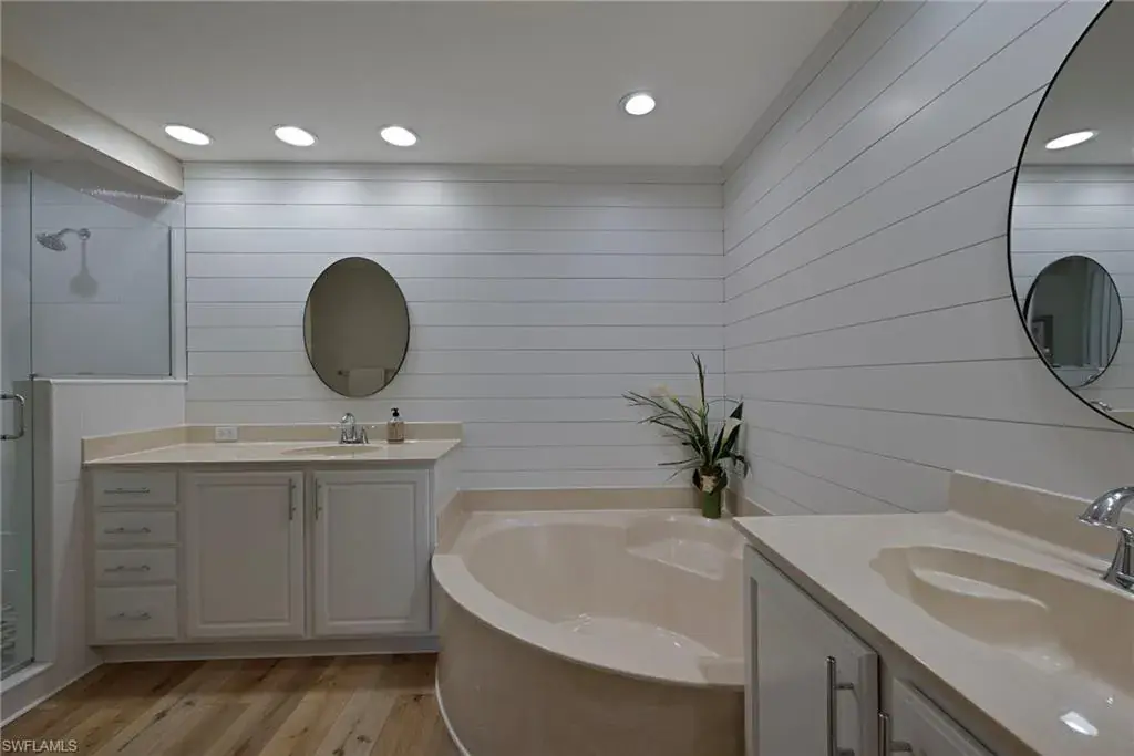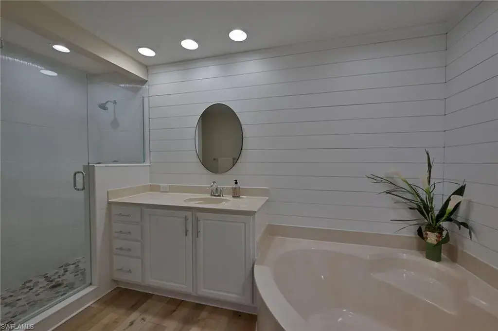 Spanning over 1,800 square feet, this refined residence welcomes you with an open and airy gathering room and adjoining dining area – perfect for entertaining. The chef-inspired kitchen offers a large breakfast bar and sunny eat-in area. The primary suite showcases beautifully updated cabinetry, dual sinks, and a separate soaking tub and shower, while the guest suite ensures complete privacy. The versatile den/office can easily serve as a third bedroom.