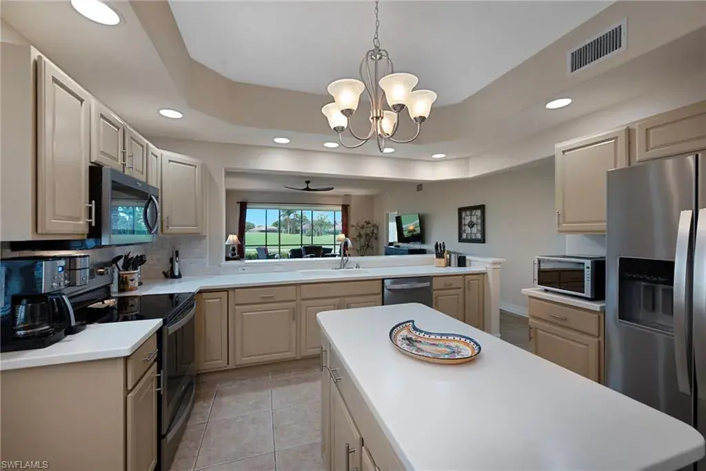 Enjoy breathtaking golf course views from the gathering room, primary suite, or screened lanai, creating the ideal backdrop for relaxation. High-speed fiber optic internet is included in the quarterly fees, and the financially secure Saratoga community is professionally managed for peace of mind and lasting value.