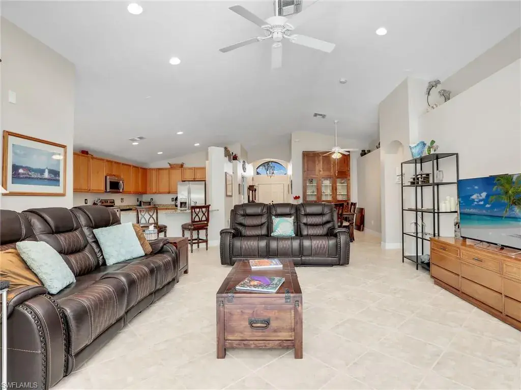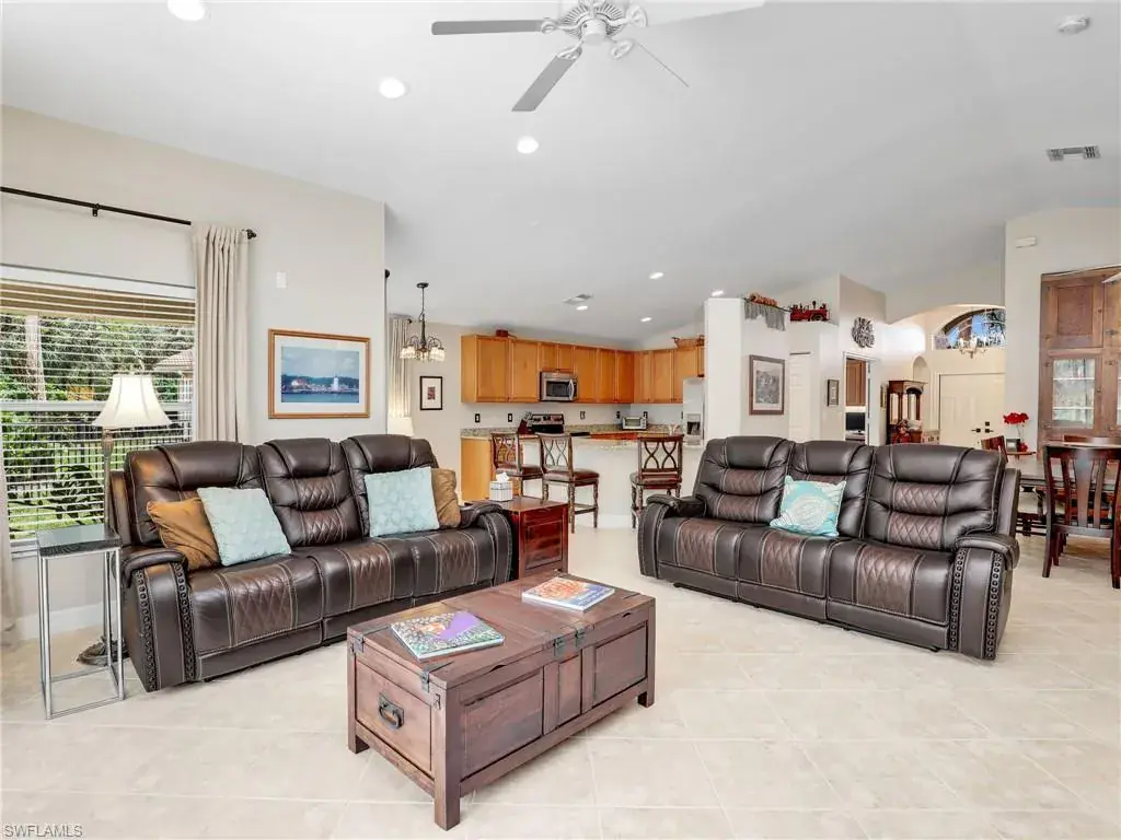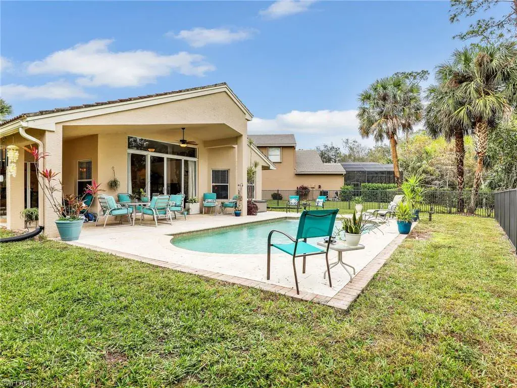 Stunning 2-Bed, 2-Bath and Den/3rd Bedroom Home with Tropical Pool! This immaculately kept home features an open floor plan, lush landscaping for privacy, and a fenced-in pool area with a new travertine deck, pool pump, and vacuum. Updates include new HVAC, hot water heater, bath fixtures, door screens, fresh paint, and new exterior lighting. Conveniently located near shopping, dining, and beaches. Perfect for year-round living or a seasonal retreat! Family fun at the pools, playground, basketball court or tennis courts. Maybe hit a few balls at the putting green. Nearby are schools for fantastic family living.