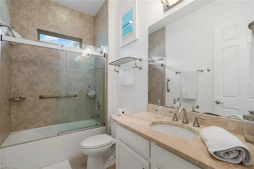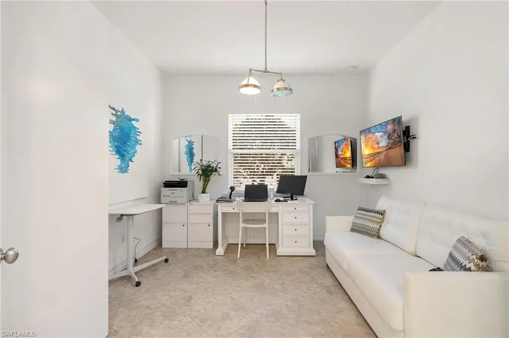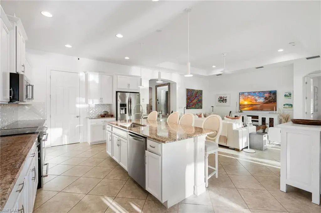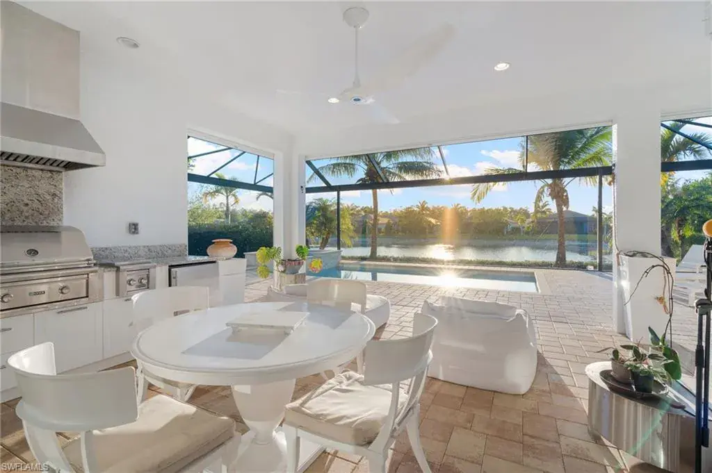 Discover effortless living in this 3-bedroom + den home nestled in the resort-style community of Naples Reserve. Thoughtfully designed for indoor-outdoor enjoyment, it features a saltwater pool, extended screened lanai, and a fully equipped outdoor kitchen with weatherproof cabinets—plus an outdoor shower for the ultimate tropical vibe. Inside, the flexible den offers space for a home office or guest overflow, while impact windows and doors, electric shutters, and an X-flood zone location (no flood insurance required) bring peace of mind. Furniture is negotiable, making your move-in seamless. Enjoy low-maintenance living in a gated community with low HOA fees and access to amenities like a lagoon-style pool, fitness center, tennis, pickleball, and scenic walking trails. Live where every day feels like a vacation— schedule your private showing today.