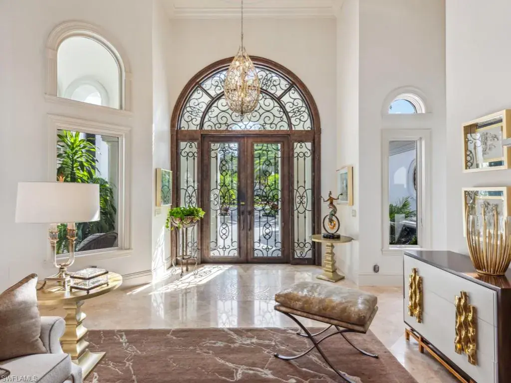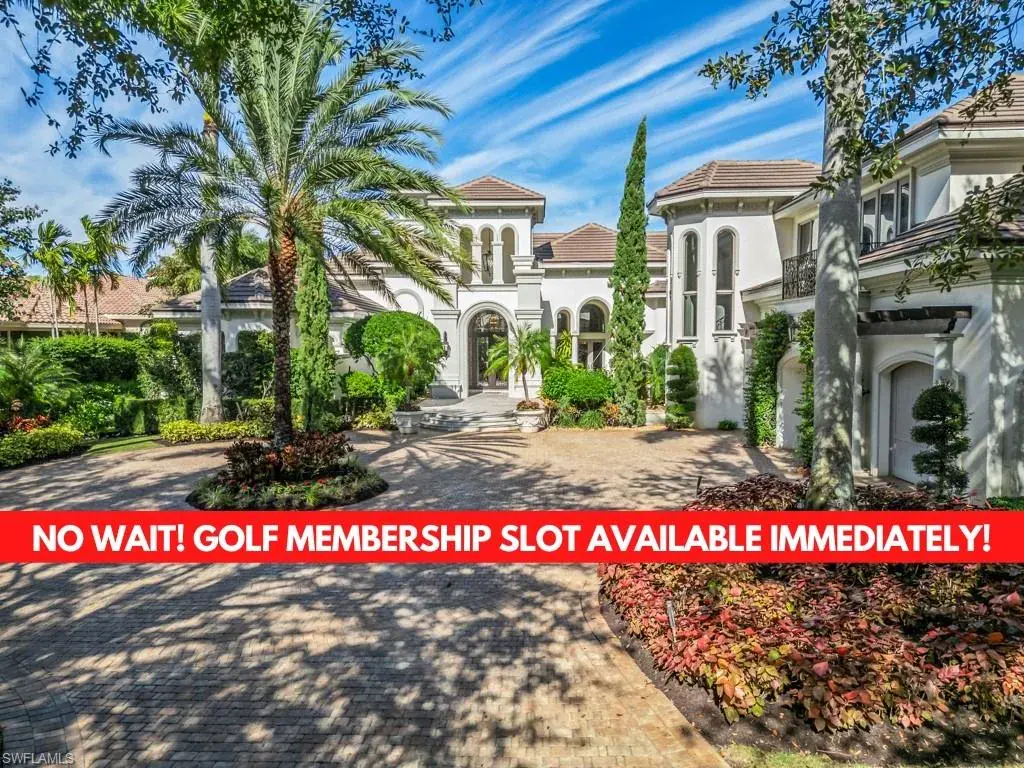 NO WAIT! GOLF MEMBERSHIP SLOT AVAILABLE IMMEDIATELY! NEWLY RENOVATED PRIVATE BEACH CLUB! -Located in the beautiful Mediterra Golf & Country Club, A truly breathtaking two-story grand estate home with five bedrooms plus a den, five full baths & 2 half baths, and exceptional upgrades throughout, including soaring volume ceilings with brilliant, rich wood ceiling beams and Magnificent marble, porcelain & wood flooring. Multiple sunny patio seating areas, a garden fountain, glamorous bay windows in the main living area, french doors, and its own generator are just some of the many astonishing features. The gourmet kitchen showcases top-of-the-line stainless steel appliances, expansive quartz countertops, a large center island, butler’s pantry, a 1000-bottle climate-controlled wine cellar & wet bar. The formal living room is adorned with an elaborate gas fireplace. The primary suite includes a seating area, bar, private access to the outdoor living area, his & hers walk-in closets with extensive built-ins, and a convenient washer & dryer. The primary bath features dual vanities, a large footed tub & separate walk-in shower. The sizeable covered outdoor living space with kitchen & fireplace is completed by a heated pool & spa that overlooks the 5th fairway. The Mediterra Beach Club offers an escape to a 10,000 sq. ft two-story private oceanfront paradise on the Gulf of Mexico. Featuring a restaurant & bar that serves members via indoor & outdoor dining, this private facility boasts a heated swimming pool, a sundeck, and cabana beach service for chairs, umbrellas & refreshments.