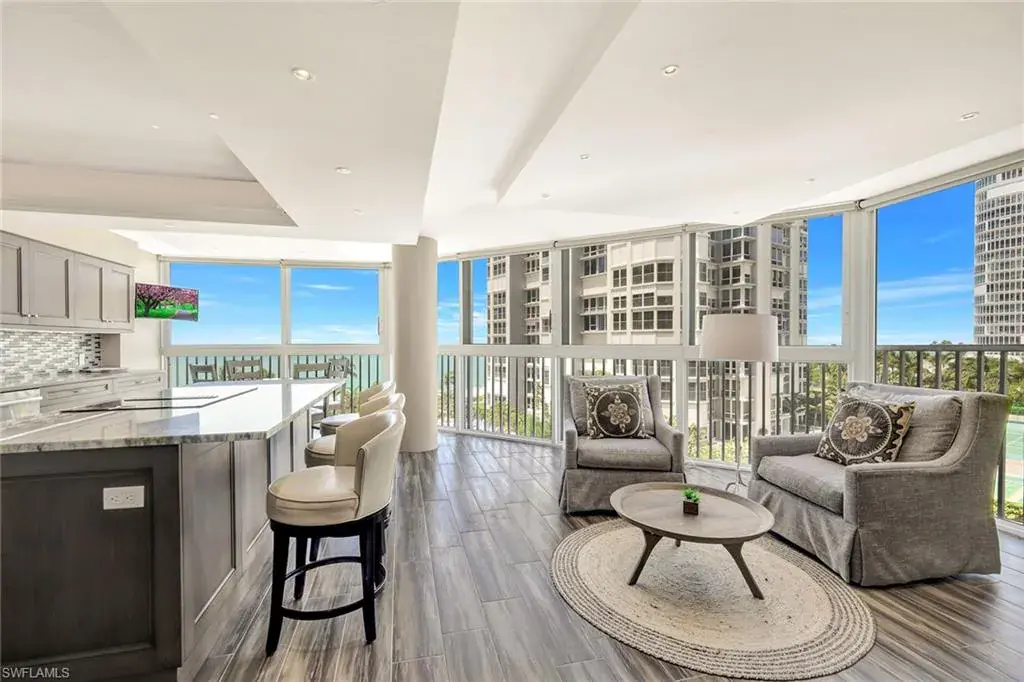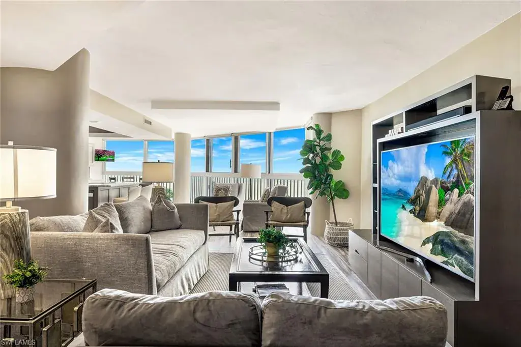 It’s not every day you come across the opportunity to own a beautifully updated residence with views of the sparkling, pristine Gulf of Mexico. Experience breathtaking sunsets each evening as they dip below the ocean’s horizon from this exquisite three-bedroom, three-bath condominium in the prestigious Savoy building. In the heart of Park Shore, this highly sought-after residence offers unparalleled coastal living and luxury. Your gourmet kitchen boasts a large granite center island with bar seating, complemented by sleek quartz countertops, soft-close cabinetry and an elegant glass backsplash. The open concept living space flows seamlessly and highlights two open, covered balconies, each offering stunning ocean views. Pristine tile flooring throughout enhances the warm and modern ambiance. This home also features three fully updated baths with quartz countertops and spacious, tile walk-in showers. Residents of Savoy enjoy a host of world-class amenities, including a state-of-the-art fitness center, tennis and pickleball courts, bocce ball and rooftop sundecks. The recently renovated lobby welcomes guests in style, while the expansive pool area, complete with a covered seating area, grills and fire pits, creates the ideal setting for entertaining. Additionally, guest suites provide comfort for visitors, and the building’s leasing policy allows up to 12 leases per year, one of the few buildings in all of Park Shore with this flexibility. This condominium makes for an exceptional investment opportunity or your own private beachside retreat.