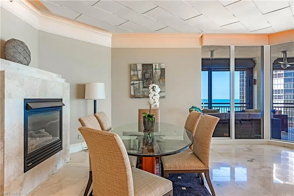 Breathtaking, expansive panoramic Gulf and Bay views await at the prestigious Seasons at Naples Cay, an iconic and exclusive enclave ideally situated just steps from Naples’ pristine beaches. This exceptional 11th floor, residence offers four-bedroom, four-and-a-half-baths and boasts 4,740 square feet of refined living space, thoughtfully designed to capture waterway vistas and abundant natural light throughout. A private elevator opens to a grand foyer, setting the tone for the dual living areas, formal dining room, and an impressive west-facing wraparound lanai—perfect for entertaining. The gourmet kitchen features a large island, high-end appliances including Sub-Zero, Gaggenau, and Thermador, two wine refrigerators, and a Miele coffee maker, seamlessly connecting to a relaxed family room surrounded by floor-to-ceiling windows. The split-bedroom layout ensures privacy, with each guest suite offering generous closets and en-suite baths; one guest bedroom, featuring a southern-facing balcony, can also function as a den or office and includes a wet bar and refrigerator. The expansive primary suite is a private retreat with Gulf views, a seating area, wet bar, dual walk-in closets, and a spa-like bath with a soaking tub, separate shower, and dual vanities. Residents of The Seasons enjoy an array of luxury amenities, including a resort-style pool, state-of-the-art fitness center, massage room, billiard room, guest suites, grill area, community room, on-site management, and 24-hour gated security. With private beach access and a prime location near Waterside Shops, Venetian Village, Artis–Naples, Mercato, and the cultural offerings of 5th Avenue South, this extraordinary residence offers the ultimate in coastal elegance and lifestyle.