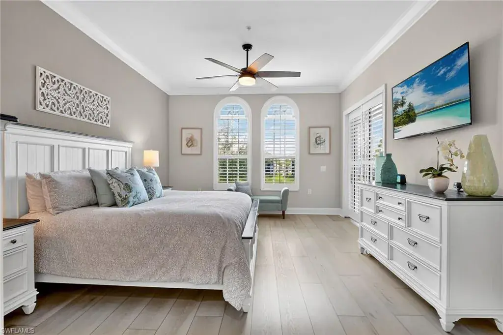 Experience luxury and comfort in this beautifully remodeled 3-bedroom+ Den, 3-bath coach home located in the desirable Serena neighborhood of Fiddler’s Creek. Situated on the 2nd floor with the convenience of a new private ELEVATOR, this light-filled residence boasts expansive water views from the spacious screened-in lanai—a perfect retreat for relaxing or entertaining. Step inside to find brand flooring, a remodeled open-concept kitchen with an oversized island offering abundant seating, striking quartz countertops, black stainless-steel appliances, and crisp white cabinetry. The primary suite is a luxurious escape, featuring impact windows, a fully remodeled bath with marble flooring, dual vanities with elegant cabinetry, and a large glass-enclosed shower. Two spacious guest suites each offer en-suite baths, ensuring comfort and privacy for visitors. Additional highlights include Storm Smart screens on the lanai, whole-home GENERATOR, new lighting throughout, 2-car garage with storage racks and garage flooring, a spacious office/den, and large laundry room with laundry tub and plenty of storage. Close to the Serena community pool with a chiller and heater to keep the water temp comfy all year long. Residents of Fiddler’s Creek enjoy access to world-class amenities, including a 54,000-square-foot Club & Spa with two on-site restaurants, resort-style pools, fitness center, tennis, pickleball, and bocce courts. Optional memberships are available for golf, beach, and boating. Ideally located just minutes from the white-sand beaches of Marco Island, downtown Naples, and an array of shopping and dining destinations. This home is the perfect blend of style, functionality, and resort living.