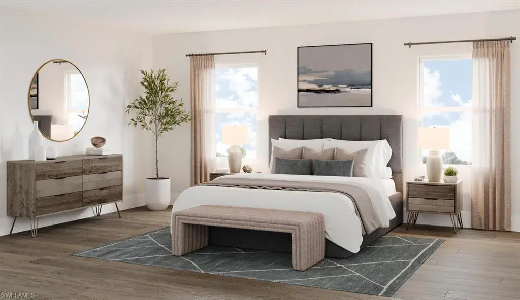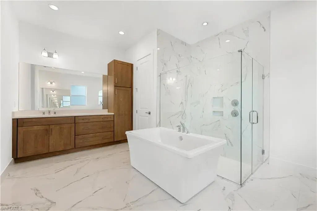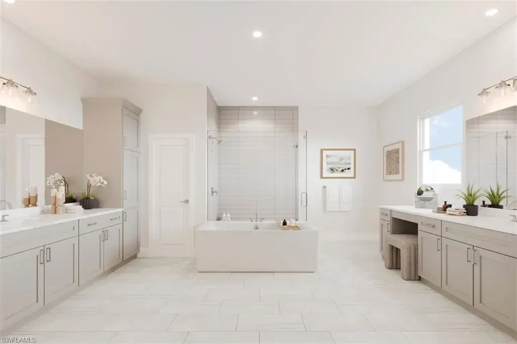 Welcome to the exquisite Montego Island Colonial, a stunning blend of timeless elegance and modern luxury, perfectly situated on a premier lakefront homesite with coveted northern exposure. This exceptional new construction residence showcases breathtaking panoramic water views, offering a tranquil and ever-changing backdrop from sunrise to sunset. Thoughtfully designed for both relaxation and entertaining, the home features a private pool and spa that overlook the serene lake—creating a true backyard oasis. Whether you’re sipping morning coffee on the lanai or hosting an elegant dinner under the stars, the peaceful waterfront setting transforms everyday moments into extraordinary experiences. Inside, the home showcases a thoughtfully designed layout that blends open-concept living with sophisticated architectural elements. The soaring two-story great room, filled with natural light, creates a dramatic yet inviting space. At the heart of the home, the chef’s kitchen is a true showpiece, featuring sparkling quartz countertops, wood cabinetry, and a full suite of premium JennAir appliances—including a natural gas cooktop for exceptional cooking performance. The primary bedroom suite is a private sanctuary, complete with tranquil lake views, dual walk-in closets, and a spa-inspired bathroom featuring an oversized walk-in shower, and ample linen storage. Upstairs, three additional bedrooms and two full bathrooms provide comfort and versatility, including one with its own en-suite bath and walk-in closet. Each bathroom thoughtfully finished with quartz countertops and coordinating wood cabinetry for a cohesive and upscale look. With impact-resistant windows and doors, this home offers enhanced safety and peace of mind, as well as energy efficiency. Seven Shores community amenity center offers a wide range of features designed for comfort, activity, and community enjoyment. Highlights include a resort-style swimming pool, a welcoming clubhouse for social events, professional-grade tennis and pickleball courts, open lawn spaces for relaxation or games, a putting green for golf enthusiasts, and a modern fitness room. A dedicated Lifestyle Director plans and hosts events, activities, and gatherings to bring residents together and enhance everyday living. Please see MLS supplements for floor plan layout/interior design selections. Don’t miss our special rate buydown incentive—ask your sales consultant for details today! Lot 70