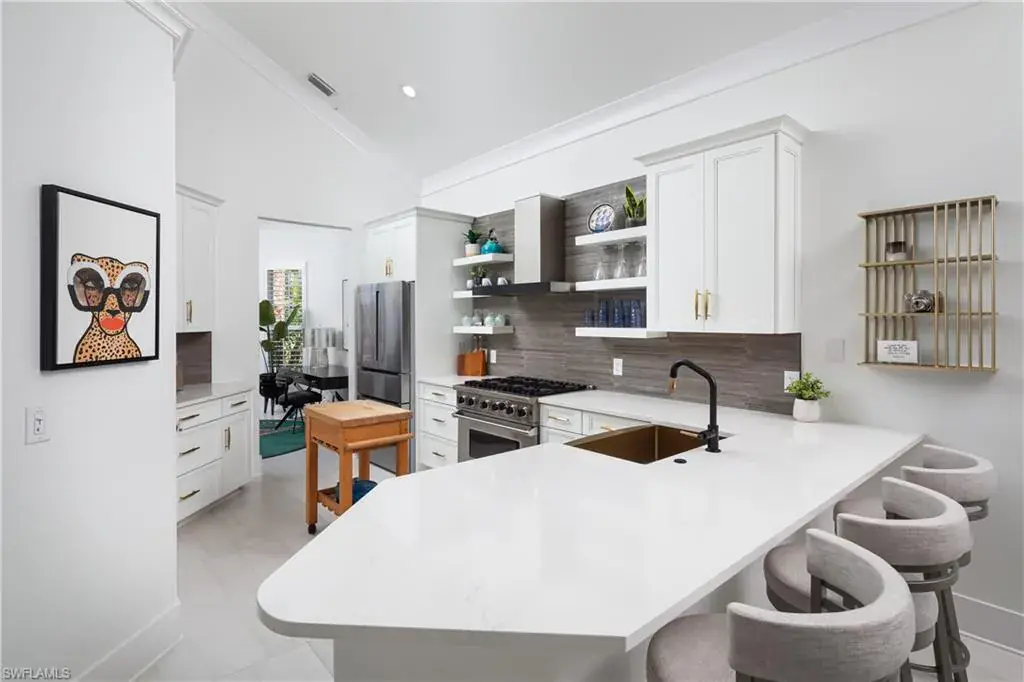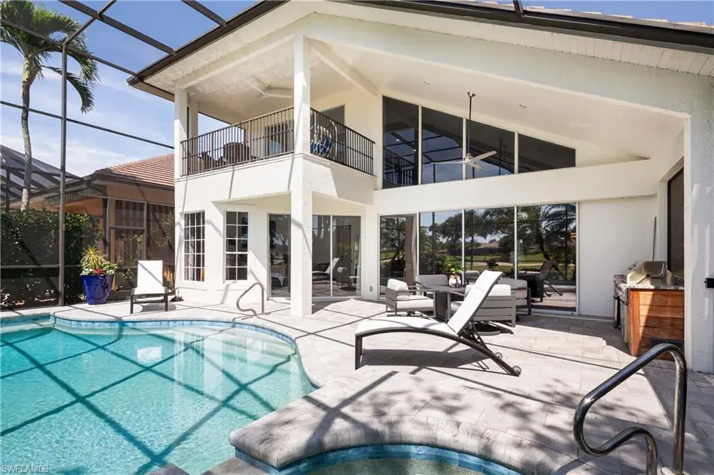 Introducing this immaculately renovated residence nestled within the gates of Kensington Golf & Country Club. This Sheffield Villas home has been thoughtfully updated and decorated to create a move in ready opportunity for the discerning buyer. The highly desirable western rear exposure showcases an outstanding view across multiple golf holes and a lake. A recent renovation project completely transformed the interior & exterior of this luxurious 2-story villa. This home features over 2900 sf of living area, 3 Bedrooms, 3 Bathrooms, a Loft, a Study, and a Den across two levels. The Kitchen features Quartz countertops, updated cabinetry, Viking & Bosch appliances, and seamlessly flows into the living spaces and out onto the lanai. Just off the main living area, enjoy sun filled evenings in the spacious Primary Retreat. The downstairs Den has been modified into an intimate media room for a tranquil viewing experience. Upstairs, guests will have their own private haven consisting of multiple bedrooms, a loft, and a balcony to savor the Florida sunsets. The outdoor living area has been upgraded with pavers, a built-in grill, lighting, and a resurfacing of the pool. Kensington is renowned for its central location and impeccable amenities center which consists of multiple dining venues, a wellness & fitness center, a resort style pool, bocce, 4 pickleball courts, 7 tennis courts, golf practice facilities, and an 18-hole championship golf course designed by Robert Trent Jones. Membership to the club is optional.