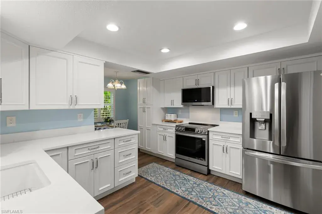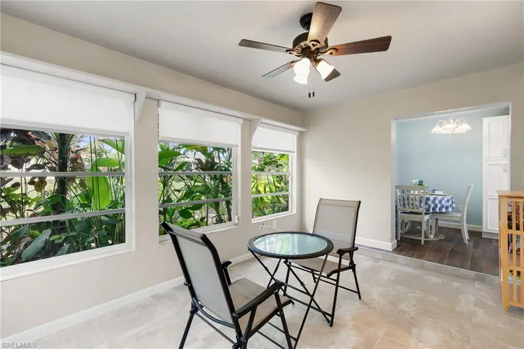 This beautifully renovated 2-bedroom + den, 2-bathroom home in Shenandoah Estates offers a perfect balance of style, comfort, and convenience. From the moment you arrive, the charming curb appeal sets the stage—stone detailing, decorative shutters, and lush landscaping create an inviting first impression. Inside, the open-concept design is enhanced by crown molding, plantation shutters, and sleek tile flooring, all bathed in natural light. The heart of the home is the newly remodeled kitchen—featuring soft-close cabinetry, quartz countertops, and stainless steel appliances (all updated in 2024). A cozy breakfast nook provides the perfect spot to start your day, while the versatile den offers endless possibilities—home office, reading lounge, or even a playroom. Designed for both relaxation and resilience, this home boasts double-hung hurricane impact windows (2024) *excluding the den area*, a hurricane impact garage door, and a fire-rated door from the garage for added peace of mind. The new A/C (2024) and roof (2018) ensure efficiency and longevity. Unwind in your private open patio, a tranquil outdoor retreat ideal for morning coffee or evening relaxation. Perfectly positioned between Naples and Marco Island, this home offers easy access to pristine beaches, shopping, dining, and entertainment. Plus, being just off Highway 41, you’re never far from everything Southwest Florida has to offer. If you’re looking for a move-in ready home with modern upgrades and effortless charm, this is it. Schedule your showing today!