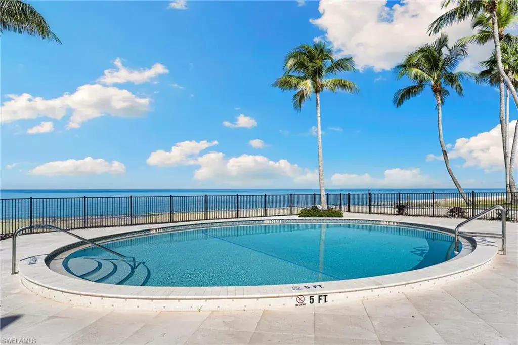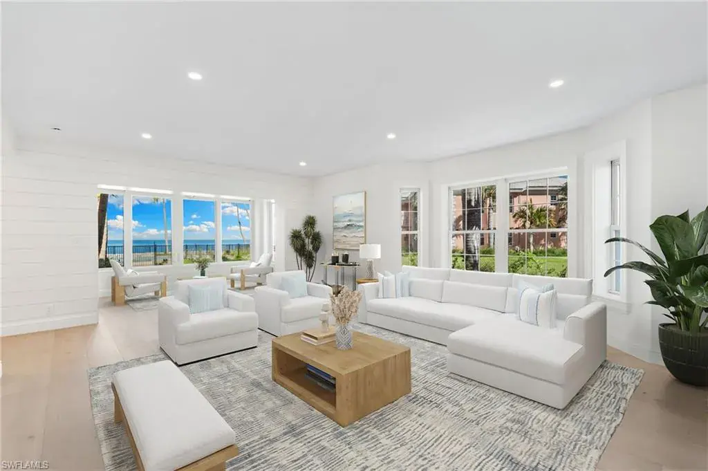 The perfect beachfront cottage: this two-bedroom, two-bath villa in the Shores of Naples offers a fully renovated interior and is just steps away from the sugary sands of Naples Beach. Masterfully crafted by BCB, the light and bright interior is luxurious and neutral, ready for you to personalize with your own design taste. Finishes such as honed Carrara countertops and backsplash, European white oak floors, Bosch and Miele appliances, and custom shiplap walls are the perfect touches to complement the colors of the coast. Residents and guests will appreciate the spacious kitchen with ample storage and an oversized island, all seamlessly flowing into the family and living rooms, ideal for gatherings. Step outside and watch the sunset over the Gulf every night—Shores of Naples Villa #1 offers beachfront living at its finest. *Photos have been virtually staged*