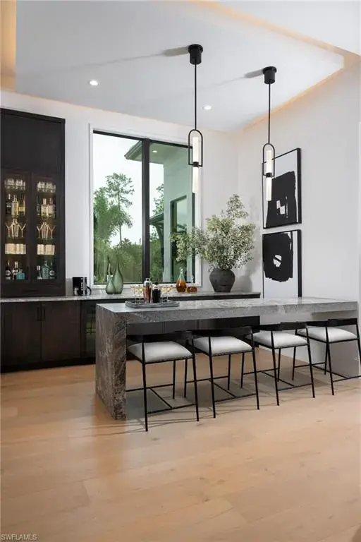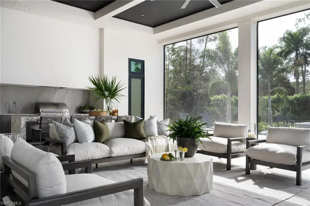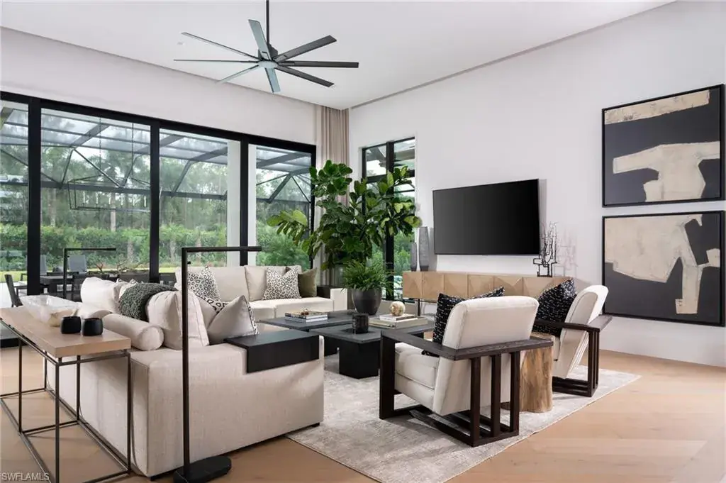 DESIGNER FURNISHED AND MOVE-IN READY HOME AVAILABLE NOW! Seagate Development Group and Theory Design present the professionally designed and furnished Liberty Custom Home in Silver Oak, one of Seagate’s newest, luxury communities in Naples. This custom home is a collaboration between Seagate Development Group and Theory Design with Architecture by RG Designs, and custom landscape & hardscape design by Outside Productions. Silver Oak, developed by Seagate Development Group, offers exclusive living on 10 expansive Estate homesites, each spanning 1.25 acres. With no homeowner’s association, residents have the freedom to customize their homes and enjoy a superior standard of living. Enjoy a modern design with clean lines and contrasting natural woods with European White Oak floors throughout and lit reverse soffit ceiling details. The Liberty model features four bedrooms, a study, four full and two half baths, and a dual two-car garage. The spacious outdoor living area is accentuated with a fire pit, oversized pool with bubbler and spa, and plenty of yard space. The outdoor living area also features a screen enclosure, tongue and groove stained ceiling, outdoor kitchen, stone see thru fireplace, pool bath and lush landscaping. The gourmet kitchen includes two tone stacked cabinetry, with lit glass cabinets, backsplash, island with waterfall countertop, Sub Zero/Wolf appliance package, and windows providing plenty of natural lighting. The dining area includes a temperature-controlled wine room. The home also has a spacious bar with undercounter refrigerator and an ice maker. The master suite features a sitting area with glass door leading to the covered lanai. The master bathroom features marble floors and comes equipped with Kohler plumbing fixtures including 2 private water closets, dual vanities, soaking tub and an oversized shower with 4 showerheads. Additional luxury features include 9.45” European White Oak wood floor throughout, custom built-in closets, 1 ¾” solid interior doors, Emtek door hardware, linear HVAC diffusers in common areas, level 5 drywall, double pane Andersen impact windows & doors, Control4 home automation system, sound system, spray foam insulation, custom iron front door, natural gas, lush landscaping, and interior designer selected custom light fixtures and furnishings. Seagate’s portfolio of companies specialize in custom homes, renovations, interior design, estate management, and land development. Together, bringing exceptional concierge levels of service to everything we do.
