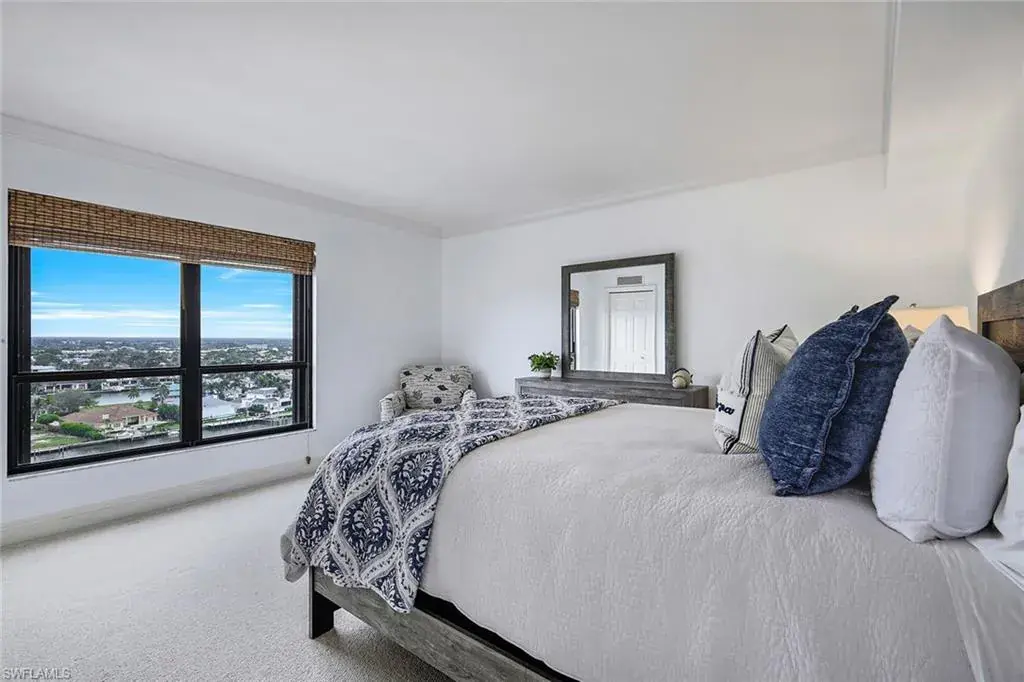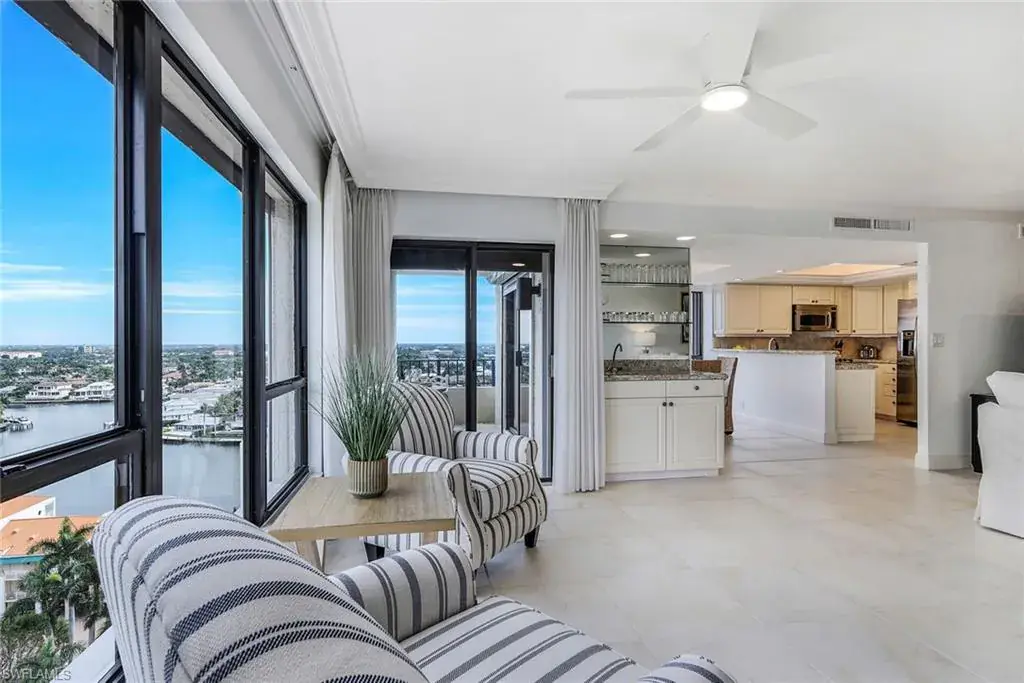 Perched high on the 16th floor, this updated 3-bedroom, 3-bath residence combines sophistication, comfort, and breathtaking views in the heart of Naples. Each bedroom features its own en-suite bath, offering the perfect retreat for owners and guests alike. Flooded with natural light through numerous windows, the residence spans 2,030 sq. ft. of air-conditioned living (2,300 total) and is offered turnkey furnished and ready for you to move right in.