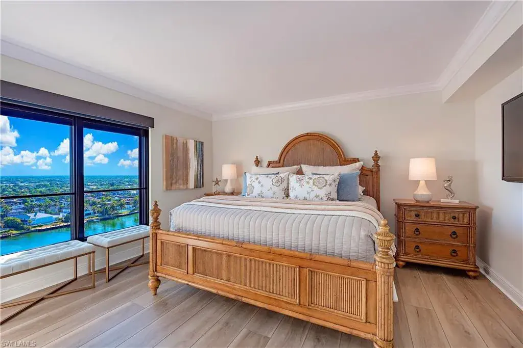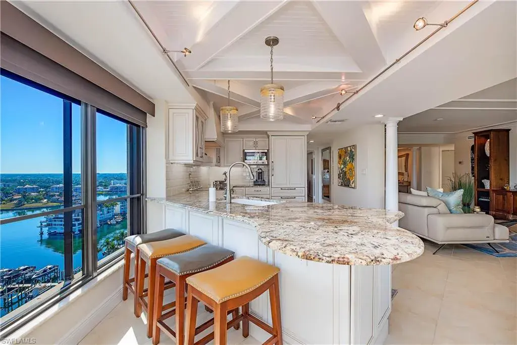 Experience the pinnacle of beachfront luxury in this fully remastered and highly coveted three-bedroom, three-bath residence at Solamar in Park Shore. Boasting breathtaking northwest Gulf views, this exquisite property offers stunning sunsets, panoramic vistas of Venetian Bay, Venetian Village, and dazzling city lights at night, all complemented by dual oversized balconies perfect for soaking in the scenery. A seamless blend of modern elegance and comfort, the neutral palette, decorative finishes, beautiful tile, and exceptional lighting enhance the open floor plan, where the kitchen effortlessly flows into the great room – ideal for entertaining family and friends. The spacious and private primary suite features a walk-in closet, dual sinks, and a separate vanity, while both guest bedrooms offer en-suite bathrooms for added privacy. Impact glass throughout provides security and peace of mind. Solamar’s exclusive community of 107 residences offers exceptional amenities, including a beachfront pool and spa, outdoor kitchen facilities, tennis courts, fitness facilities, a social room, billiards, and two guest suites. Located just steps from Venetian Village and close to Naples’ premier destinations—Waterside Shops, Artis-Naples, Mercato, and downtown 5th Avenue South—this residence also offers access to boating opportunities with available boat slips at the Venetian Yacht Club. Meticulously crafted with every luxury and convenience in mind, this Solamar gem is more than a home; it’s a lifestyle choice for those seeking unparalleled elegance and natural beauty in the heart of Naples.