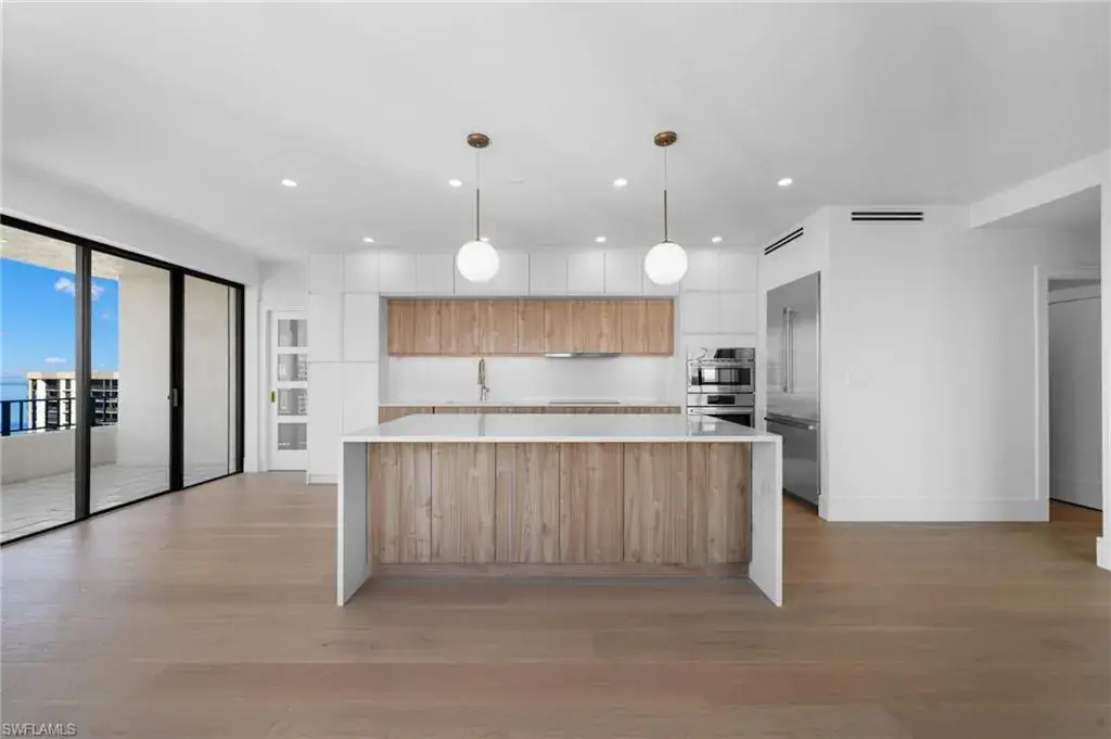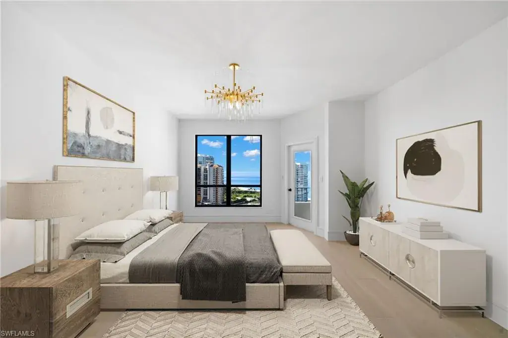 Luxury + modern + reinvented + PENTHOUSE = An absolutely STUNNING 3 bed, 3 full bath with 270 degrees of Bay to Gulf views. This exquisite condo showcases a sleek European style chefs kitchen with top of the line appliances, an enormous island, large walk in pantry, wet bar and wide unobstructed open space and sweeping views. Located on the top floor of the contemporary high-rise of Solamar you’ll enjoy the soaring high ceilings and two parking spots which only the penthouse level units offer. Wide plank oak wood floors, marble baths, modern cabinetry and over 2500 square feet of living space, while also delivering those coveted breathtaking direct western GULF and southern exposure bay vistas. Each bedroom suite has been thoughtfully designed with large custom closets. The Owner’s suite is a true retreat with a one of a kind oversized shower, walk in custom closet, and spa like hotel feel. This stunning unit checks all the boxes! Residents of the Solamar enjoy an array of amenities, including a gym, beautifully renovated pool area, formal social room, a casual resident’s lounge, commercial grilling area, paddle board storage, tennis courts, pickle ball and shuffleboard. Security is paramount with a full-time doorman, security staff, and patrol. Parking is a breeze with an attached secure garage, and ample guest parking available. Experience the pinnacle of Naples living with concierge services and a vibrant community atmosphere. This penthouse is a true gem on the Boulevard, offering a lifestyle of comfort and sophistication. Exquisite dining and shopping at Venetian Village are within walking distance. For those wishing to spend time on the water private boat storage and rental is available across the street at the marina. Solamar sits directly on the Park Shore promenade, a private 1.3-mile paved path to stroll along the beach. Owners may have a pet under 30 pounds and lease two times per year with a 90-day minimum. One of the best built properties in Park Shore you can also be confident knowing Solamar sustained no damage from recent storms, there are no upcoming assessments, and the building is in solid financial standing. You deserve the best. Move in and live in luxury with all that the #2002 Penthouse at Solamar has to offer.
