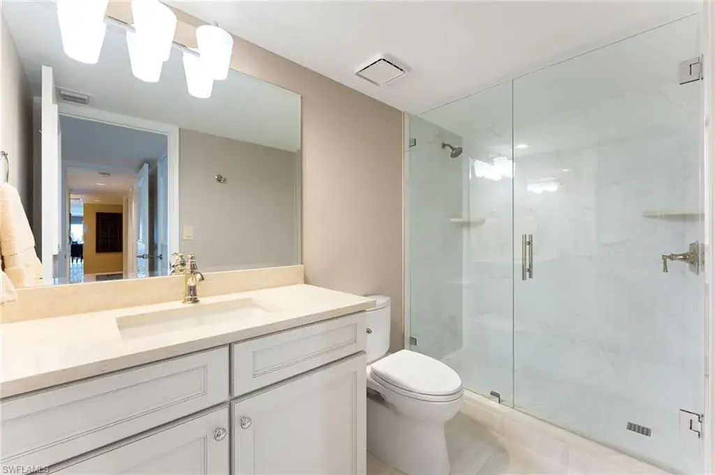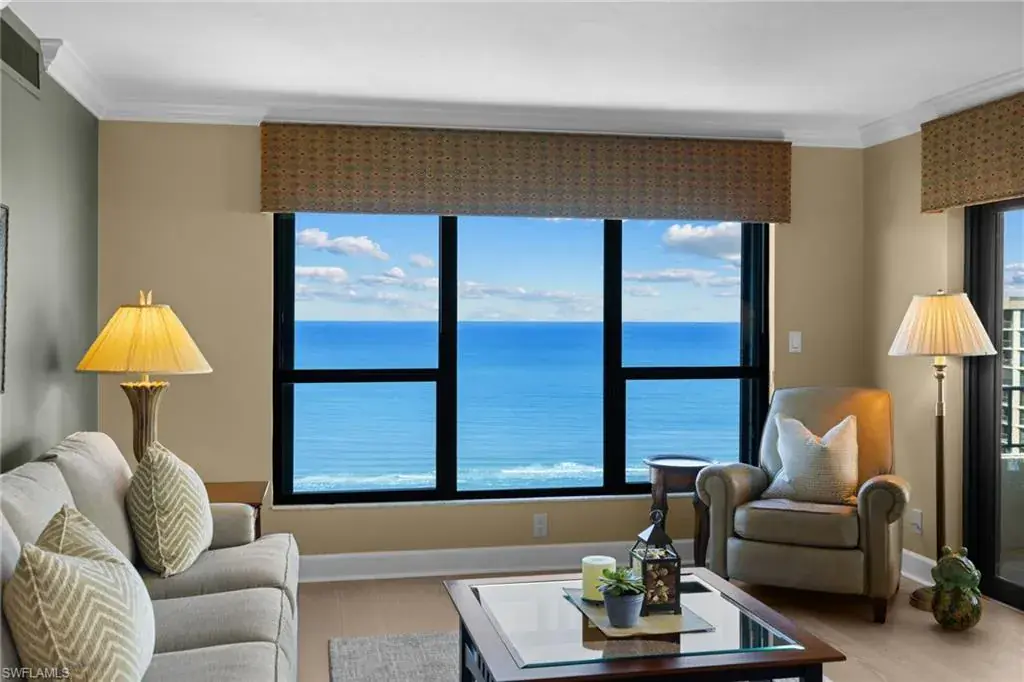 Each bedroom is thoughtfully designed with large custom walk-in closets, while the recently updated bathrooms boast marble finishes, double sinks, and designer fixtures. The Owners suite offers a serene retreat with its luxurious amenities and spa like feel. This immaculately maintained unit has impact hurricane rated doors & windows, and newer a/c and water heater provide ease of maintenance. Residents of the Solamar enjoy an array of amenities, including a gym, beautifully renovated pool area, formal social room, a casual resident’s lounge, commercial grilling area, paddle board storage, tennis courts, pickle ball and shuffleboard. Security is paramount with a full-time doorman, security staff, and patrol. Parking is a breeze with an attached secure garage, and ample guest parking available. Experience the pinnacle of Naples living with concierge services and a vibrant community atmosphere. This condo is a true gem, offering a lifestyle of comfort and sophistication. Exquisite dining and shopping at Venetian Village are within walking distance. For those wishing to spend time on the water private boat storage and rental is available across the street at the marina. Solamar sits directly on the Park Shore promenade, a private 1.3-mile paved path to stroll along the beach. Owners may have a pet under 30 pounds and lease two times per year with a 90-day minimum. One of the best built properties in Park Shore you can also be confident knowing Solamar sustained no damage from recent storms, there are no upcoming assessments, and the building is in solid financial standing. Furnishings are negotiable, so you can move right in and enjoy the Naples lifestyle!