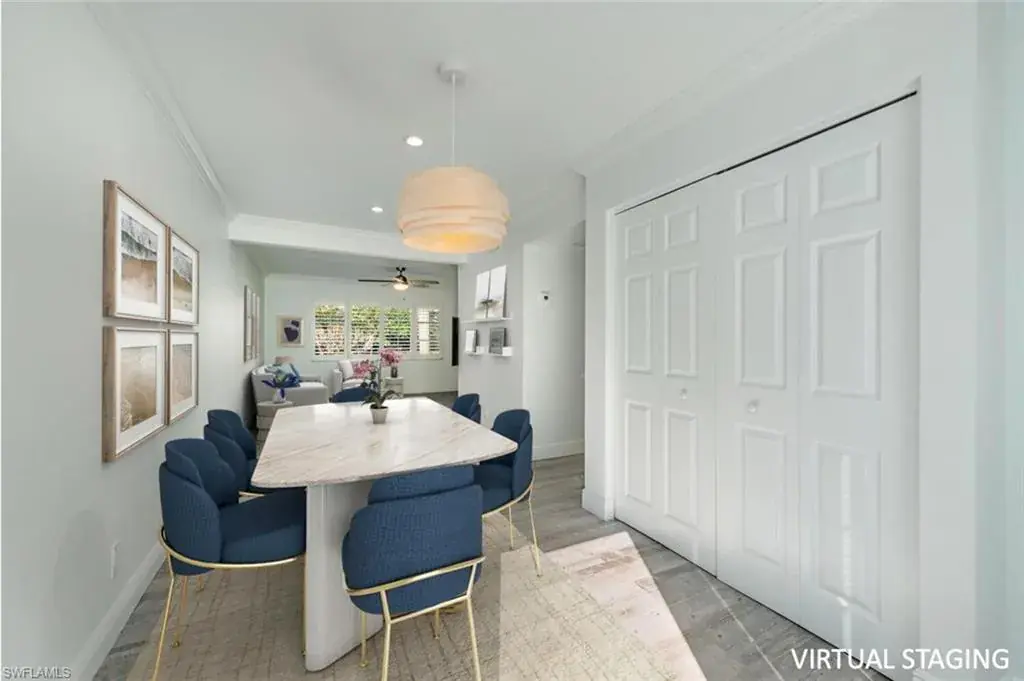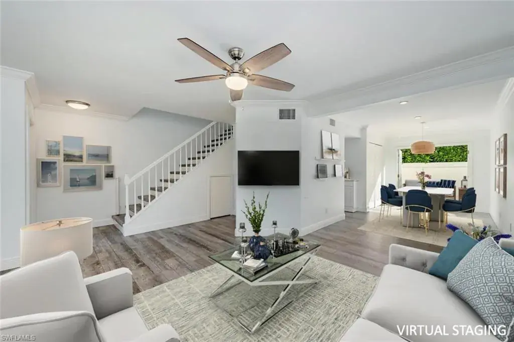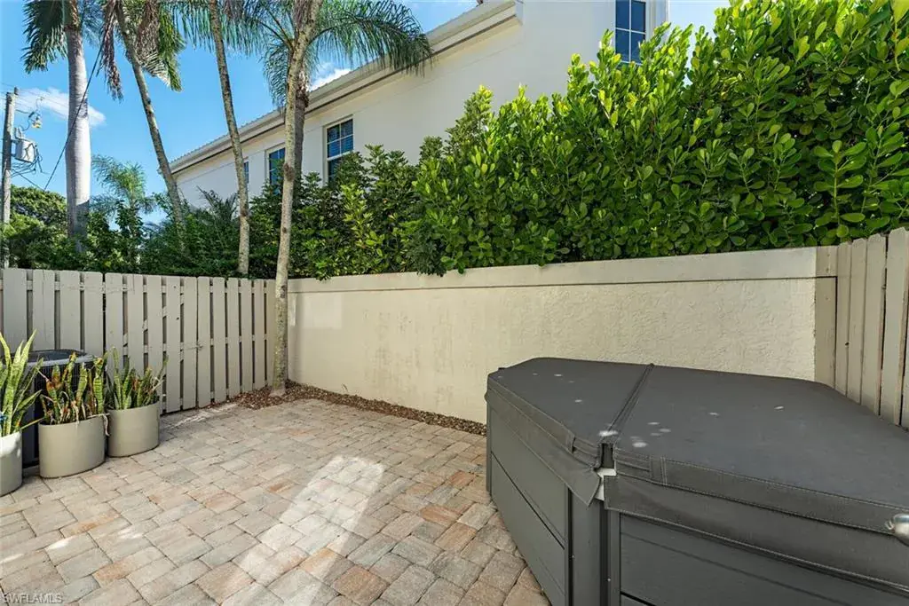 Discover this charming single-family attached villa in Old Naples, complete with a private one-car garage. Nestled in a serene, tree-lined neighborhood, it’s just 3.5 blocks from the area’s iconic white-sand beaches and 3 blocks from the vibrant shopping and dining on 5th Avenue South. Spanning 1,302 square feet across two levels, this light-filled home includes 2 bedrooms, 2.5 bathrooms, a 220-square-foot private backyard patio, and a 195-square-foot private garage. Inside, you’ll find brand new wide plank white oak luxury vinyl floors throughout, elegant crown molding, and a crisp white kitchen featuring a farmhouse sink, marble countertops, a glass tile backsplash, and stainless-steel appliances. Recent updates enhance its appeal: a new HVAC system, fresh patio pavers, epoxy flooring in the garage, illuminated bathroom mirrors, a new skylight, updated disposal, new washer/dryer, new ceiling fans, interior and garage painted recently, new light fixtures with “click” mood lighting in dining area, kitchen and bathrooms, 2 flat screen TVs and a 2024 $9000 Jacuzzi in the backyard! Located at 185 4th Street South—one of just three units in the HOA—this villa has never flooded as it sits on high ground in the X-500 zone near the corner of 4th Street South and 2nd Avenue South. Notably, 2nd Avenue South doesn’t connect to US-41, ensuring minimal traffic and a tranquil setting. Seize the chance to embrace authentic Old Naples living.