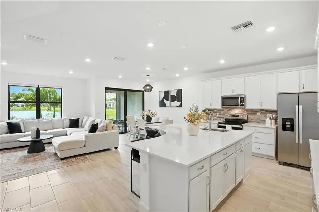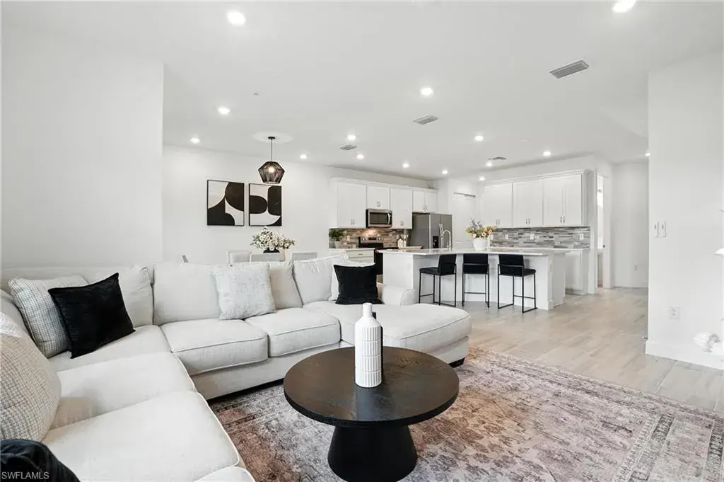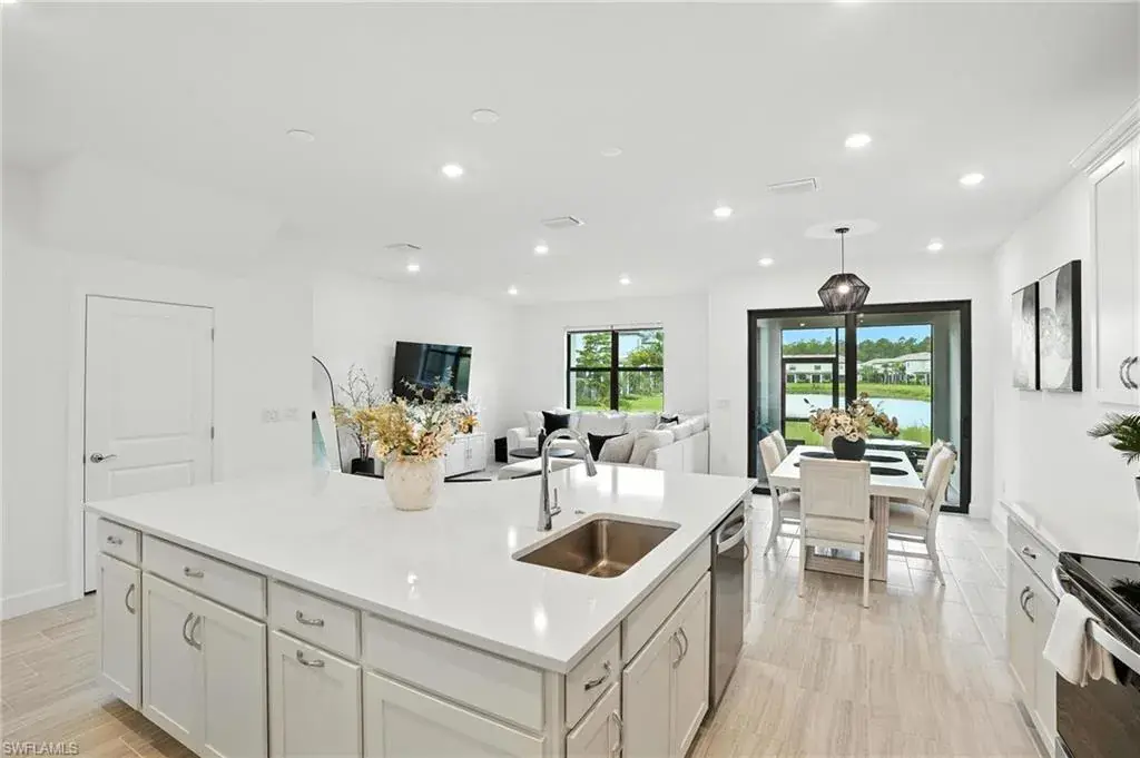 Rare Opportunity in SOLD OUT Sonoma Oaks! Own the last available Augusta model townhome in this meticulously cared-for North Naples community. Just a few months old, this 3 bed, 2.5 bath and highly desirable 2-car garage home includes active, transferrable Pulte warranties. Enjoy an open-concept layout with a spacious living/dining area, oversized quartz island, stylish tile backsplash, and brand-new stainless steel appliances. Gorgeous tile floors flow throughout the main level, while all bedrooms are carpeted upstairs for comfort and privacy. Motorized window coverings add a sleek touch in several rooms. This south-facing lake view screened-in patio offers tranquility and extra privacy. The owner’s suite features a large walk-in closet, dual sinks, tiled shower, and serene lake views. Down the hall, you’ll find an upgraded laundry room with built-in cabinetry and sink. Two guest bedrooms offer ample light, large closets, and a shared full bath. Sonoma Oaks amenities include a heated pool, cabana, and grilling area just steps from your doorway. Located minutes from Founders Square, dining, gyms, and Vanderbilt Beach. This is the newest, most updated and move-in-ready home in the neighborhood—don’t miss it! Special financing incentive available toward an interest rate buy-down with seller’s preferred lender – ask for details!