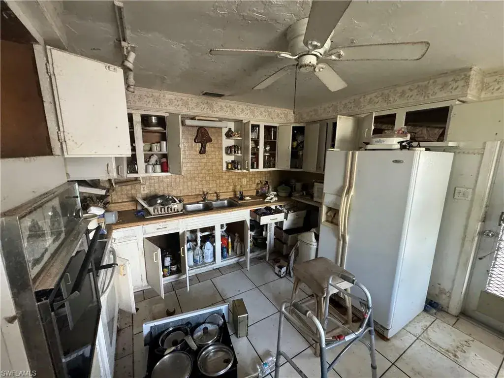 1200+ sf. single family home with fenced-in backyard, on Gulf access canal lot with no HOA and a detached garage. This home has a great location within Naples, close to downtown 5th Ave. and the beaches, as well as restaurants, shopping, etc. This home is located on a dead-end street, and backs up to a canal with Gulf access, providing lots of peace and tranquility. Home is being sold AS-IS / WHERE-IS. Nothing will be removed by seller from property. Home is in need of repairs and updating, CASH ONLY.