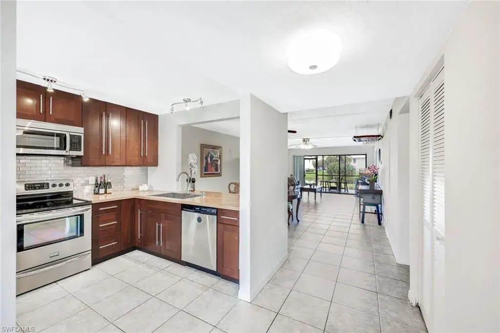 PRICE REDUCED!!! Spacious and inviting 2 bed, 2 bath, ground floor condo in the wonderful Spanish Pines neighborhood of Palm River! Excellent location close to beaches, dining, Veterans Park (pickleball), shopping and more. Light, bright and open with a stunning view of the lake from the large screened in lanai. This unit has an updated kitchen featuring beautiful cabinetry, updated lighting, backsplash and stainless steel appliances. Open view through the dining room and living area to the screened in lanai and lake. The large master bedroom features double entry doors, a spacious walk-in closet, and it’s own sliding door to the lanai. The updated master bath has beautiful custom cabinets, drawers, decorative tile, two sinks, and an oversized walk-in shower. The 2nd bath is updated as well. Plenty of room for relaxation and entertaining. Enjoy sitting on your lanai with a cool cocktail in the evening, or coffee in the morning. This unit has a both a carport and an additional assigned parking spot. There is plenty of guest parking as well as a private storage unit in the carport area. Furry friends are welcome – two pets are allowed. Live here all year round or use it as an investment property. Rentals are allowed. Community swimming pool just steps away. Easy access to I-75. Don’t miss this great opportunity today!!