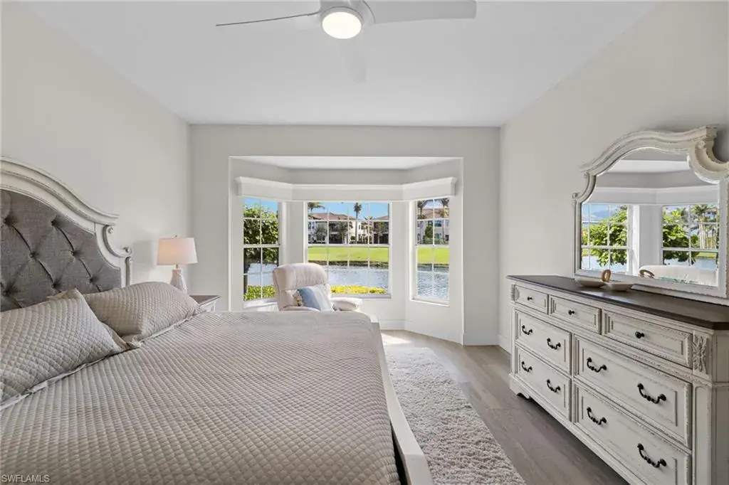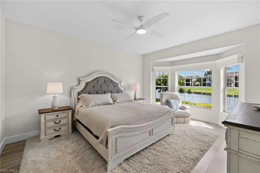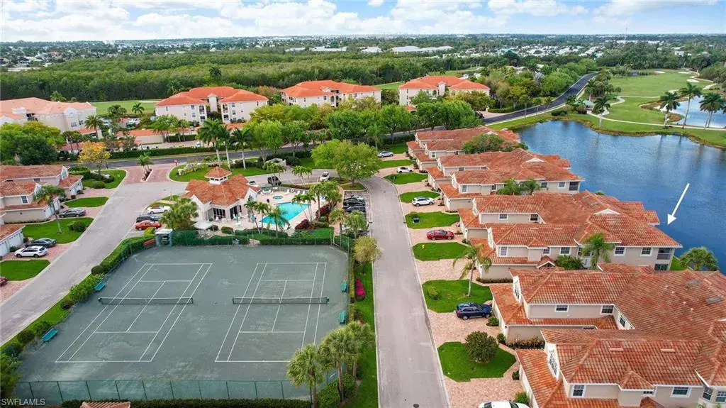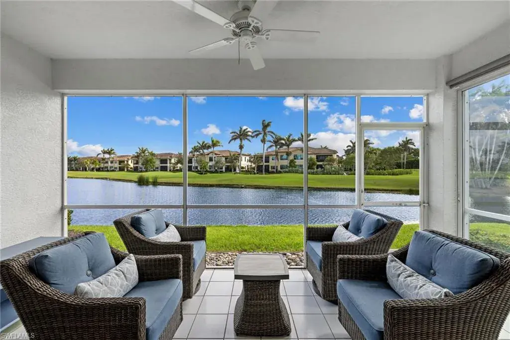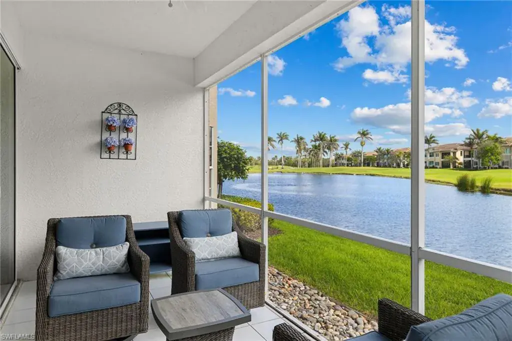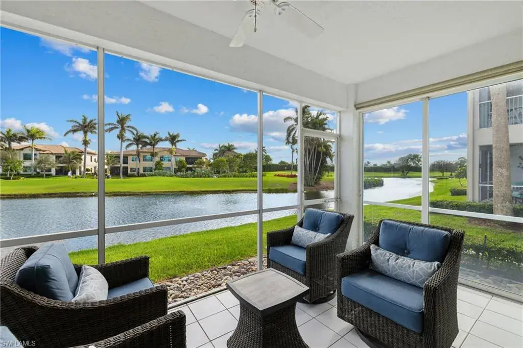 Enjoy breathtaking panoramic lake and golf course views of Windstar’s 14th fairway, stretching from tee to green, all from this nicely updated 1st floor coach home. Spanning 1,832 sq. ft. under AC, this home features 2 bedrooms, a spacious den, and 2 full bathrooms. The high ceilings and spacious layout are complemented by a spectacular kitchen, which includes an island, granite countertops, pantry and stainless appliances. Additional luxuries include a large laundry room, plantation shutters, elegant crown molding, beautiful new flooring, spacious screened lanai, attached garage, lush tropical landscaping, and numerous other enhancements add to the allure of this remarkable home. New picture frame screens were just installed on the Spinnaker Pointe lanai’s, enhancing views with an unobstructed design. Spinnaker Pointe offers great curb appeal, community tennis courts, community pool/spa, private clubhouse and much more. Windstar offers incredible amenities including: Tom Fazio designed golf course, newly redesigned clubhouse with spectacular views of Naples Bay, 72 slip deep-water marina with direct Gulf access in less than ten minutes, clay tennis courts, bocce ball, fitness, Keewaydin Island Beach Club with boat shuttle and private membership.