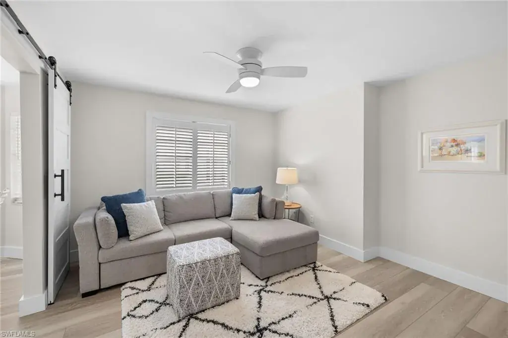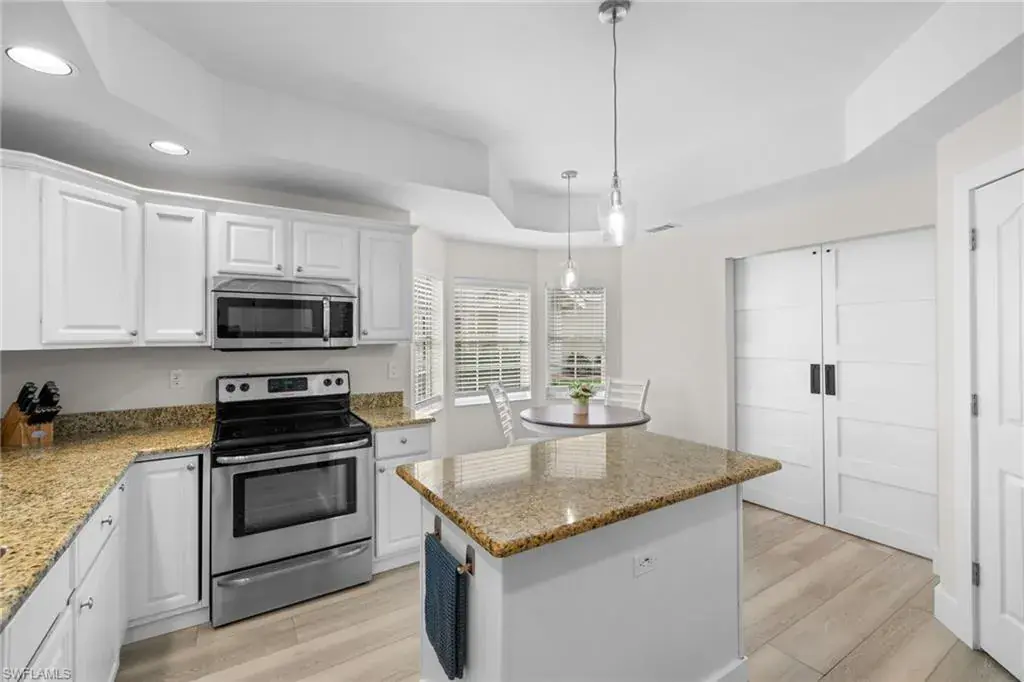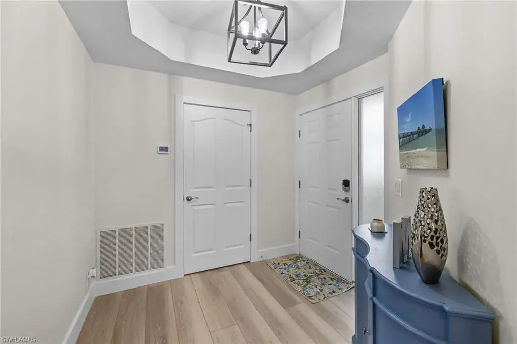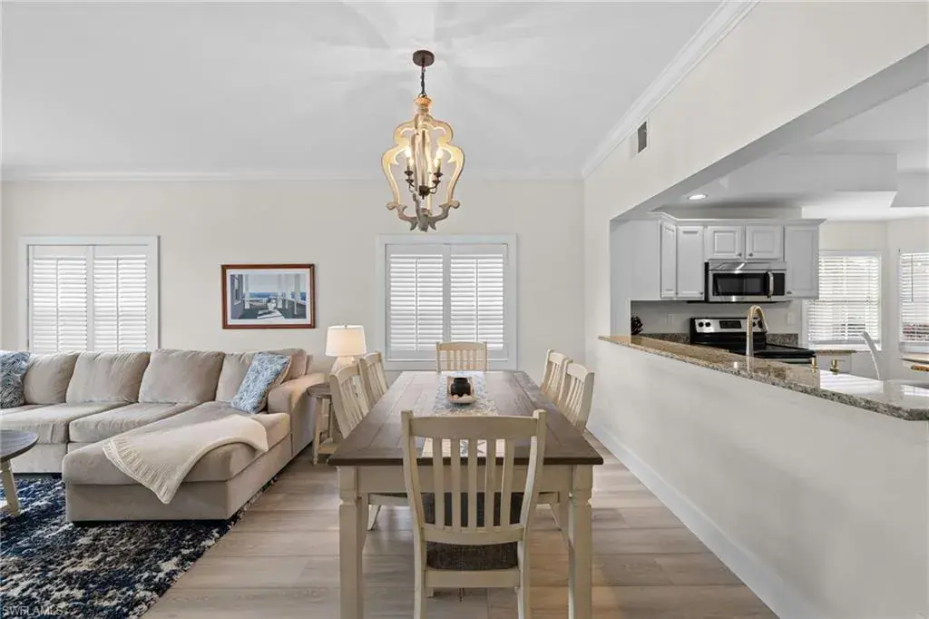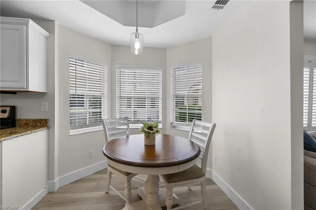 Enjoy breathtaking panoramic lake and golf course views of Windstar’s 14th fairway, stretching from tee to green, all from this nicely updated 1st floor coach home. Spanning 1,832 sq. ft. under AC, this home features 2 bedrooms, a spacious den, and 2 full bathrooms. The high ceilings and spacious layout are complemented by a spectacular kitchen, which includes an island, granite countertops, pantry and stainless appliances. Additional luxuries include a large laundry room, plantation shutters, elegant crown molding, beautiful new flooring, spacious screened lanai, attached garage, lush tropical landscaping, and numerous other enhancements add to the allure of this remarkable home. New picture frame screens were just installed on the Spinnaker Pointe lanai’s, enhancing views with an unobstructed design. Spinnaker Pointe offers great curb appeal, community tennis courts, community pool/spa, private clubhouse and much more. Windstar offers incredible amenities including: Tom Fazio designed golf course, newly redesigned clubhouse with spectacular views of Naples Bay, 72 slip deep-water marina with direct Gulf access in less than ten minutes, clay tennis courts, bocce ball, fitness, Keewaydin Island Beach Club with boat shuttle and private membership.
