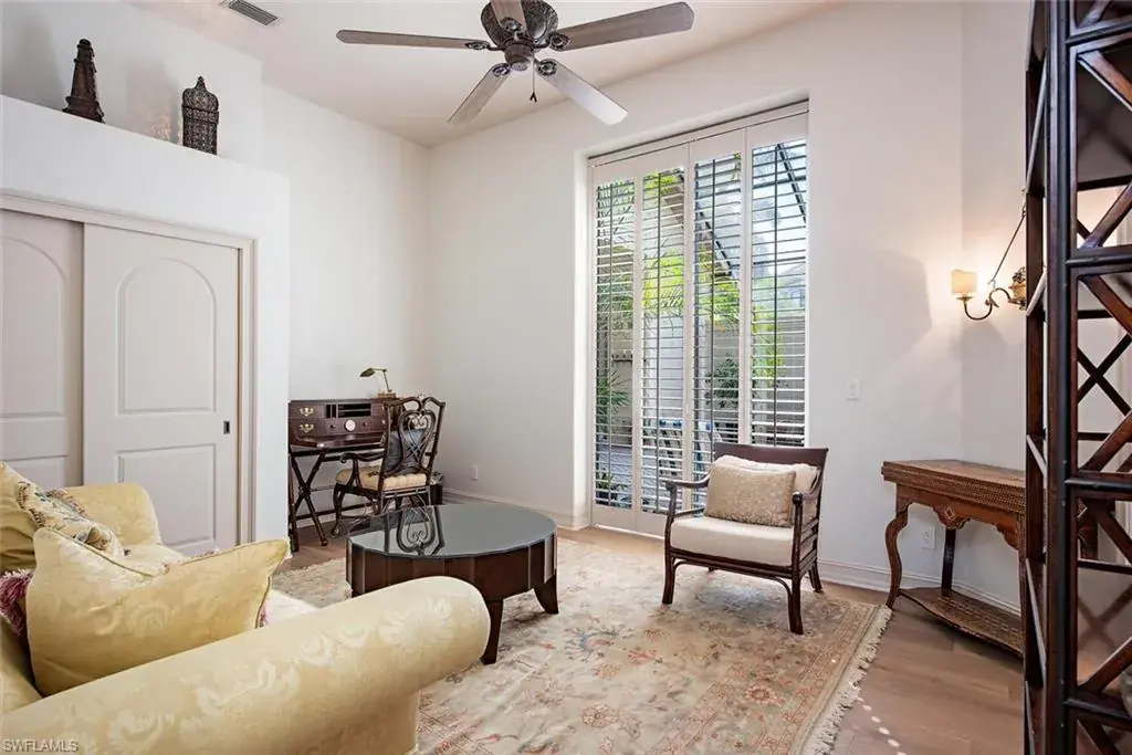 The spacious chef’s kitchen has custom cabinetry, a large walk-in pantry, and newer appliances. Custom 8ft. solid core doors and premium hardware throughout. Plantation shutters and 10ft. sliding glass doors open to the pool courtyard and guest cabana, Custom lighting, skylights, a home office, a central vacuum system, and a heated pool/spa with a waterfall, are just some additional amenities to make your living here a joy. Other notable features include an AqualLink control system, storm shutters, a 2-car garage, brick pavers, and a tropical courtyard. The golf course, lake, and mangrove views from your screened lanai are stunning. Windstar has a Tom Fazio-designed golf course, and clubhouse with spectacular views of Naples Bay and 72 slip deep water marina, affording direct gulf access in less than 10 minutes. The club has clay tennis courts, a fitness center, and the Keewaydin Island Beach Club with a boat shuttle and private membership.