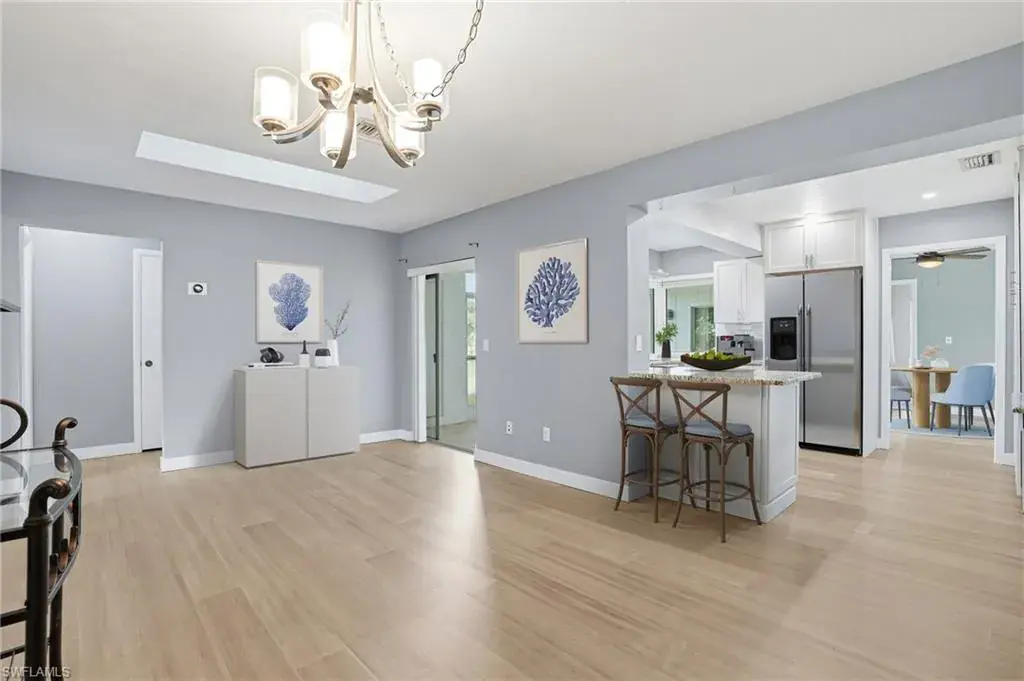 Light pours into the home through a custom skylight and impact-rated double-pane windows, creating a bright, airy atmosphere that feels welcoming all year long.