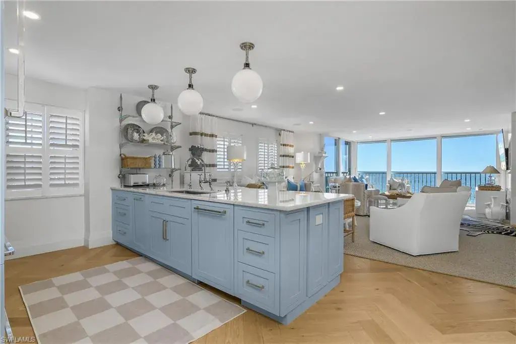 Welcome home to this luxurious beachfront end condominium residence at the St. Croix Club on the Moorings beach. This is a beautifully updated property which has been remastered by Joy Tribout Interiors, well known in St. Louis, Chicago, Arizona, and of course, Naples! She & her design specialists have rendered all of the elements which seamlessly make this property the epitome of coastal living. Here you’ll enjoy the highest level of appointments, finishes, & fixtures.