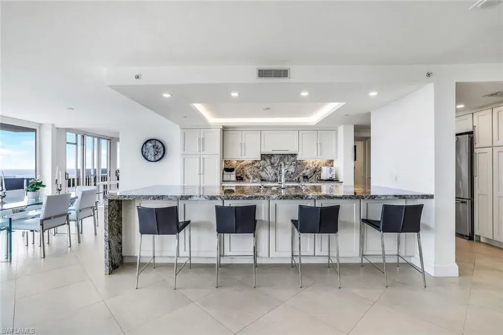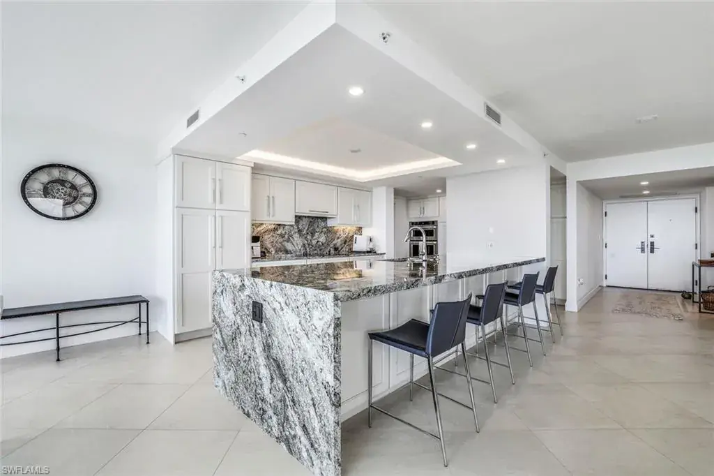 Experience unparalleled luxury and spectacular Gulf  and preserve views from this gorgeous 14th floor 3 BR PLUS DEN, PET FRIENDLY home in St. Kitt’s at Pelican Bay! This highly sought-after Naples high-rise home may very well be the home of your dreams. This meticulously updated 3 BR + den, 2 bath FURNISHED residence offers the perfect blend of modern elegance, comfort and convenience. Move right in as this home is ready for you to enjoy today! As you step into this home, you’ll be captivated by the panoramic, sweeping views of Pelican Bay Preserve and the Gulf beyond. The open floor plan creates a seamless flow between the living room, dining area, and kitchen, making it ideal for both entertaining and relaxation. Enjoy the colorful sunset view each evening – there are multiple spaces to observe throughout the home. The great room, the kitchen, the lanai, the primary and a guest suite offer stunning views of the western skies. Both guest suites are thoughtfully designed —one with mesmerizing views on the western side of the home and the other offering complete privacy on the eastern side of the home. A generous balcony invites you to enjoy your morning coffee or evening cocktails while soaking in unparalleled sunsets and the serene Gulf breeze. This residence boasts brand-new, wrap-around hurricane glass doors and windows (10/24) offering unmatched safety, efficiency, and compliance with the latest building codes; this state-of-the-art upgrade includes a robust warranty for the new owners. St. Kitts has been transformed into one of Pelican Bay’s most beautifully updated buildings with recent multimillion-dollar enhancements: $2M in exterior upgrades (fresh paint & stylish new tile installation, $4M was spent on the pool area and the renovated social room. In addition, the St. Kitt’s building offers 2 guest suites, a redesigned fitness center, and a state-of-the-art lobby. This is true elevated living! The unmatched Pelican Bay lifestyle offers a prime location – just steps from two tram stations, granting easy access to two exclusive beach clubs along three miles of pristine, white-sand beaches. As a Pelican Bay resident, you’ll enjoy chair and umbrella service, fine dining at North and South Beach restaurants, 18 Har-Tru tennis courts, a vibrant community center with multiple fitness classes, cultural events, and more! This home includes TWO DEDICATED PARKING spaces. St. Kitt’s is a short drive to the Southwest Florida International Airport, downtown Naples, fine dining, world class shopping and SO MUCH MORE! Don’t miss this rare opportunity to own a fully updated, turn-key home in one of Naples’ most coveted communities. Golf membership is available for additional fees. The perfect home in the perfect location – complete with an on site manager. Enjoy luxury living in a relaxed atmosphere! Experience the magic of the Pelican Bay lifestyle with so much to do, to see and to LOVE!