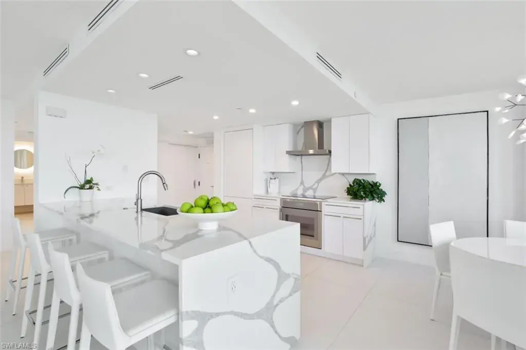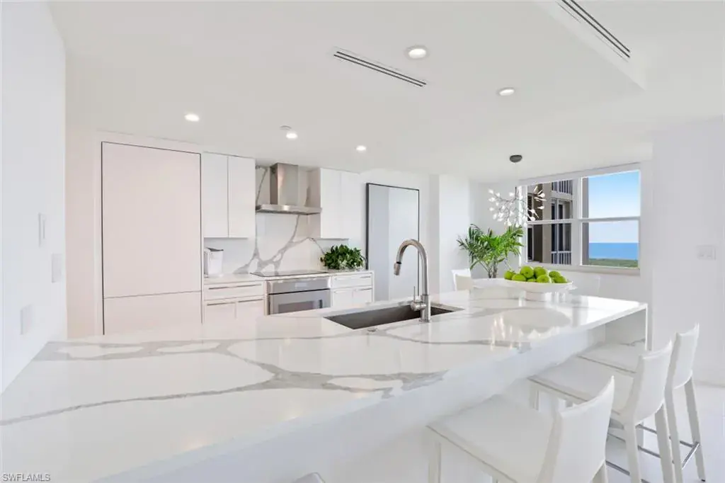 Move right in to this stunning 15th floor 3 BR end unit, where the total renovation has been reimagined, remastered & redesigned to reflect the exceptional western panoramic views of the Gulf of Mexico. Balancing sleek modern lines with a well appointed coastal design, this sky home welcomes you with show-stopping 5 foot matte tile throughout, as well as Impact Windows & Sliders throughout. This massive project was reengineered with luxury fixtures & quality finishes, even removing doors & walls. Inviting gourmet kitchen features Thermador appliances, invisible refrigerator, waterfall island & countertops, Moooi Chandelier. Electric roll down sun screens, enhanced millwork, California Closets. Dramatic updates are truly floor-to-ceiling, from the 5′ tile flooring, to the ceiling that was actually raised! Main bedroom offers breathtaking views of the pristine beach, & the other 2 bedrooms have views of the city lights. Master bath has Maddux soaking tub, oversized shower, Sitka toilets. St. Kitts spent 2 yrs on luxury amenity renovations; completely remastered outdoor living space includes brand new Knife Edge Saltwater Pool, Chaises on the Sun Shelf, Pergola, Fire Pit, New Social Rooms & Fitness Center, this luxury tower has on-site management & secure lobby. Pelican Bay has 3 miles of private sugar sand beach on the Gulf of Mexico, beachside dining, tennis, kayaks, nature trails, it is truly paradise!