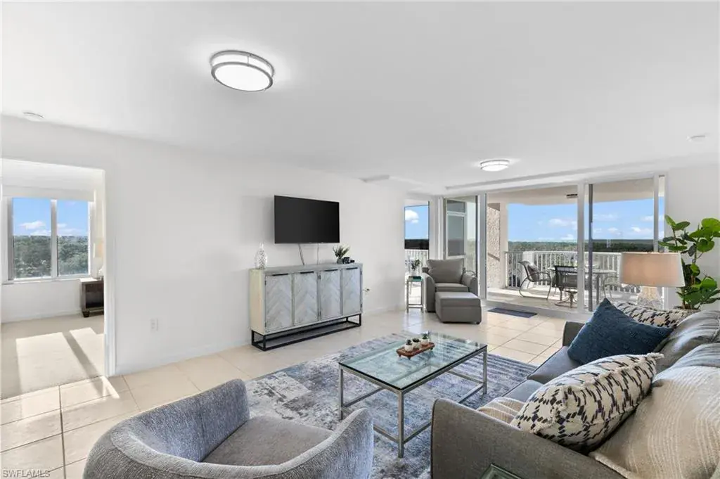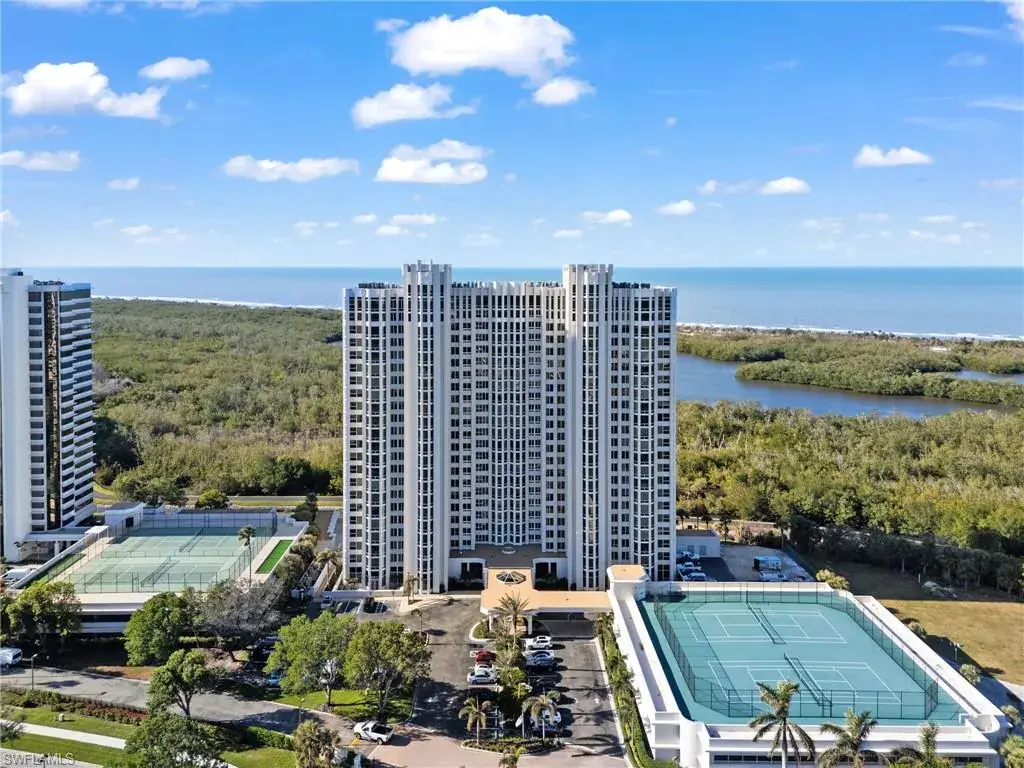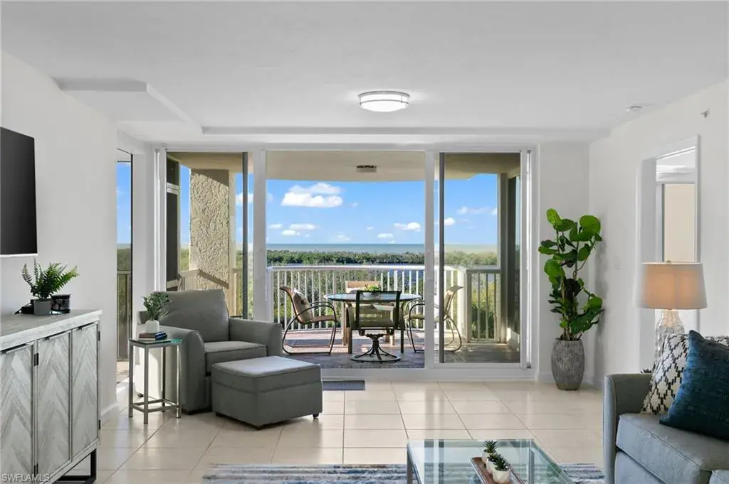 Enjoy sunsets gleaming through the floor-to-ceiling impact windows and doors reaching from the front of the building all the way to the back, allowing the light to flow through seamlessly. The private terraces offer uninterrupted views of the sparkling Gulf water, sandy beaches, mangrove preserves, and Pelican Bay golf course enhancing the natural beauty of the surroundings.