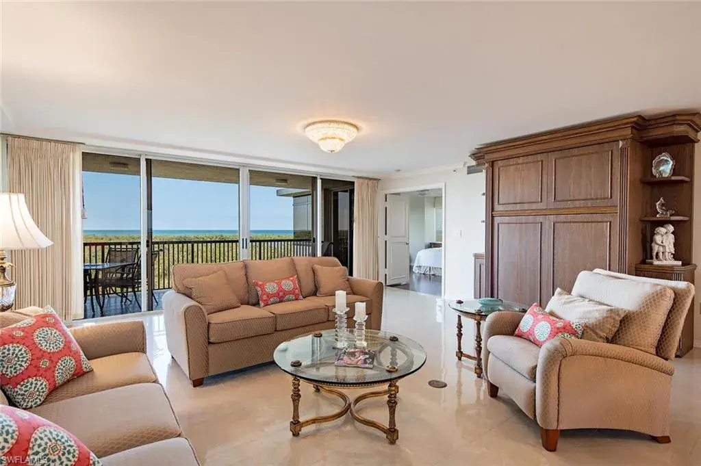 RARELY-AVAILABLE three-bedroom plus den in the prestigious St. Pierre! Enjoy gulf views from almost every room of this spacious fifth floor residence. Sip coffee in the morning from one of three lanais. Savor the sunsets from another. Property highlights include….marble, tile and hardwood floors, wet bar, eat-in kitchen, laundry room with utility sink, and two master suites. More than 2700 square feet under A/C!!! Endless entertaining opportunities throughout! It’s all about the Pelican Bay lifestyle where amenities abound.