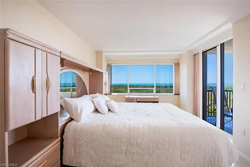 Enjoy spectacular, panoramic gulf views from this light, bright, 6th floor condo in the prestigious St Pierre. This high-rise home boasts two master suites, an eat-in kitchen and two lanais. Savor the sunsets from almost every room. Sold furnished. Building amenities include guest suites, tennis courts, bocci, shuffleboard, pool, spa, fitness and social rooms. All common areas are near completion of a major remodel project! Located in the heart of Pelican Bay, and adjacent to the tram station, you’re just moments away from the private, beautiful beaches and restaurants of the luxury gulf-front lifestyle.