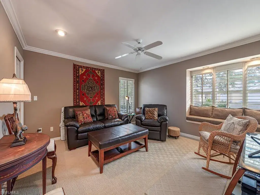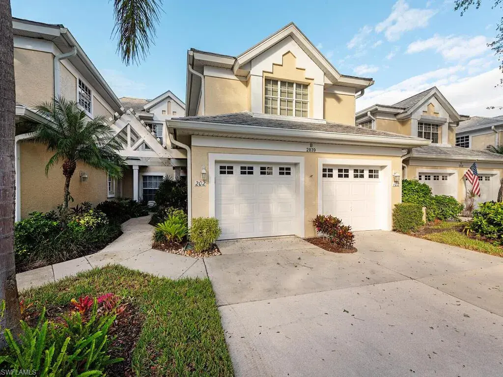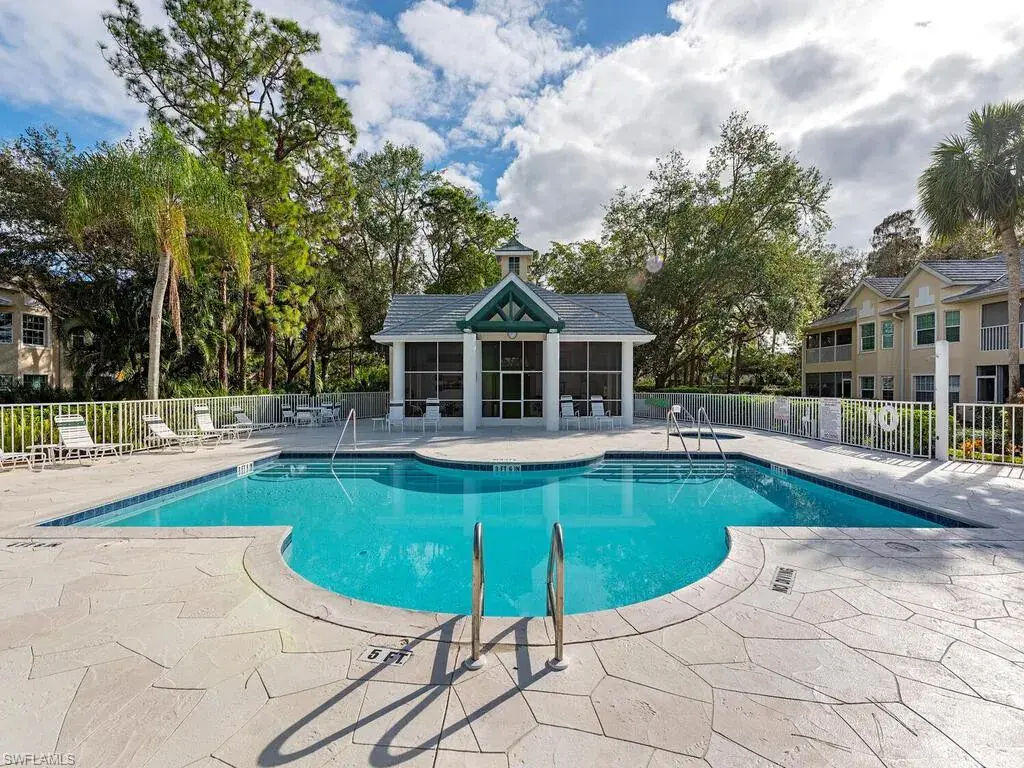 Lakefront Living. Gorgeous Views and Sunsets over the 30+ Acre Fresh Water Lake. Top Floor spacious 3 br 2.5 bath Condo with 1 car private attached garage. Desirable Kings Lake location. Serene community of 72 coach homes. No through streets. Lush Natural and Mature Vegetation. Short stroll to relaxation at the beautiful Steeplechase clubhouse, pool, and spa with lots of sunny deck area and natural surrounds. Light and Bright second (top) Floor unit. Private entry directly into condo. Sunny west exposure with breezes off the lake. Electric roll down shutters on the spacious lanai. Attractively furnished (turnkey). Spacious floor plan and high ceilings. Split bedrooms. Large Kitchen includes a pantry and island; it looks to the great room, lanai and lake over the bar with comfortable stool seating. The kitchen is also connected to the formal dining area with plenty of light. The spacious master bedroom suite has views over the lake and sliders to the lanai. 2nd bedroom suite. Bonus room can be large 3rd bedroom, den, or office with it’s private 1/2 bath. Utility room with washer/dryer. Bike, jog or walk along 3 mile Greenway next to Kings Lake or around large lake just adjacent to Steeplechase. Kings Lake offers Tennis and Pickleball. Convenient to Kings Lake Neighborhood Center with Publix, Starbucks, Restaurants and more. Just 4 miles/10 min to Olde Naples Restaurants, Boutiques, Entertainment & Sandy Beaches on the Gulf of Mexico. A wonderful home to enjoy your Naples Lifestyle on the Paradise Coast!