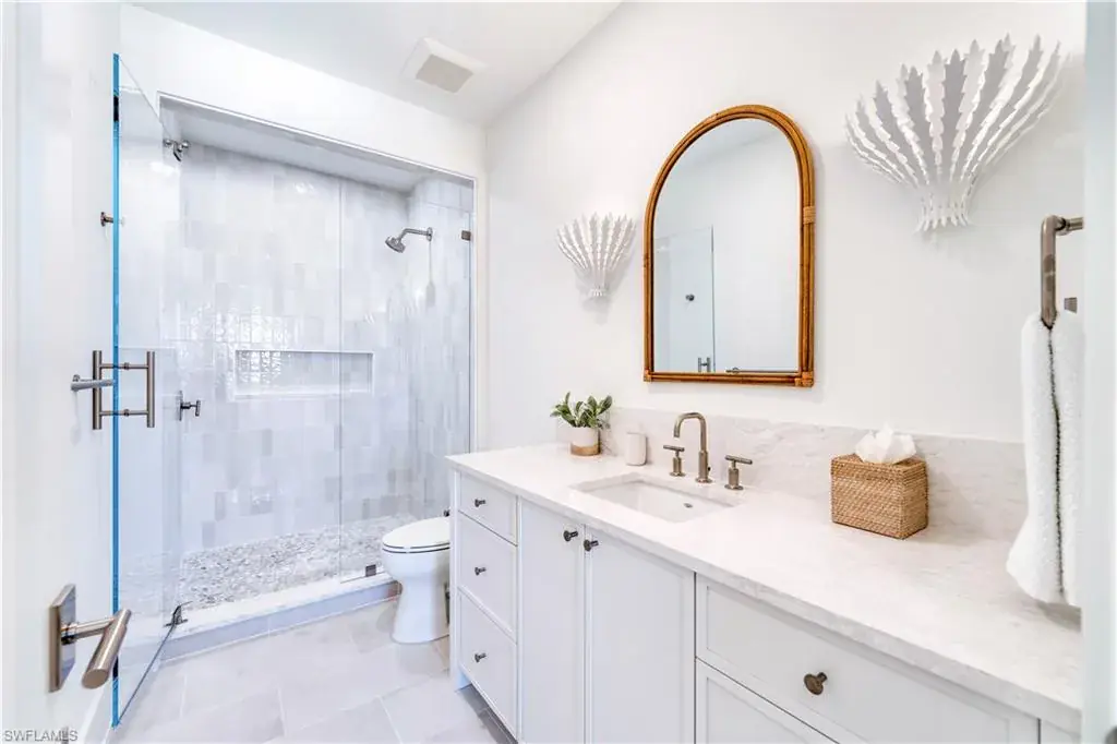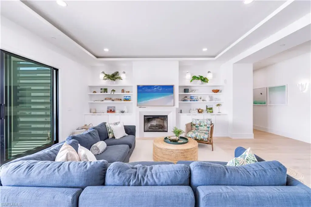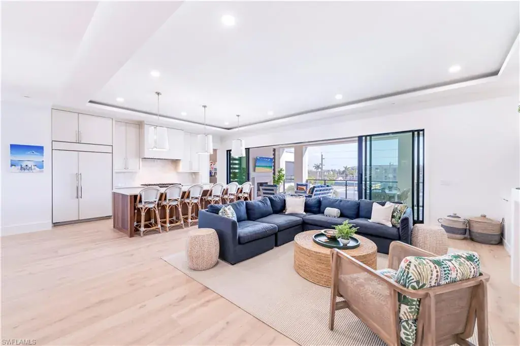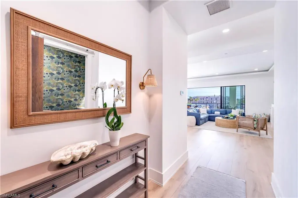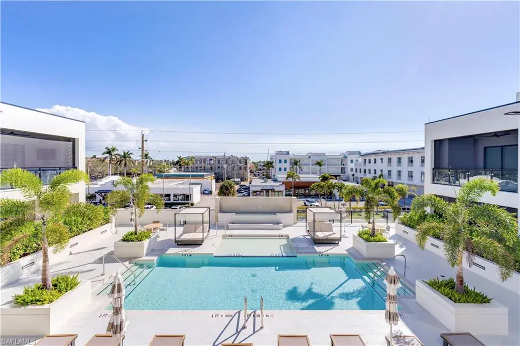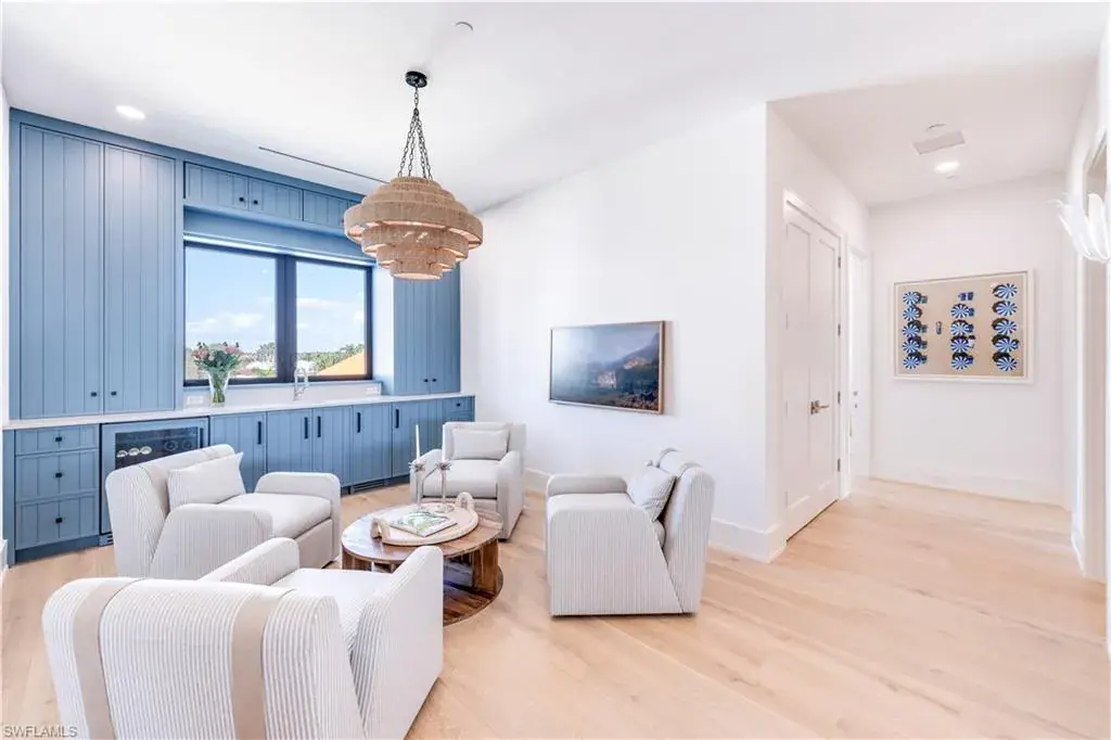 Welcome to Residence 303 — a premier penthouse-style residence at Stella Naples, where modern elegance meets coastal sophistication in the heart of Olde Naples. Completed in 2024, this boutique luxury condominium development offers an unmatched living experience just minutes from the upscale dining and shopping of Fifth Avenue South and the sugar-white sands of the Gulf of Mexico. This one-of-a-kind, top-floor residence is a true showcase of architectural distinction and interior design. Styled with whimsical beach house elegance by the award-winning design team at LVD Spaces, this expansive three-bedroom, three-and-a-half-bath home boasts 2,875 square feet of open-concept living space with soaring 10-foot ceilings and a sun-drenched southern exposure. Every detail has been meticulously curated with highly customized designer finishes, from premium wall coverings to elegant lighting and tailored millwork. The gourmet kitchen is a culinary dream, featuring custom Ruffino cabinetry, quartz countertops, Sub-Zero refrigeration, and a striking custom slate blue Viking range — all seamlessly integrated into the open living and entertaining space. The expansive primary suite is a serene retreat, offering a spa-inspired en-suite bath with an oversized walk-in shower, bespoke fixtures, and generous walk-in closet. What truly sets Residence 303 apart is its exclusive private rooftop terrace — the only residence in Stella Naples to feature a dedicated internal staircase leading to its own 1,123-square-foot private rooftop oasis. Equipped with a built-in outdoor kitchen and natural gas fire bowl, this rare al fresco living space is ideal for entertaining under the stars or enjoying Naples’ year-round sunshine in total privacy. Residents of Stella Naples enjoy an array of upscale amenities, including a 42-foot resort-style pool with cabanas and expansive sun deck, a stylish Resident Lounge, state-of-the-art fitness center, and a dedicated turf pet park. Two deeded parking spaces with EV charging capability, private climate-controlled storage, and dual residents’ lobbies offer both convenience and comfort in this intimate, boutique community. Don’t miss this rare opportunity to own the signature residence in one of Naples’ newest luxury developments — an irreplaceable blend of style, privacy, and premier downtown location. Residence 303 is truly a masterpiece of Naples coastal modern living.