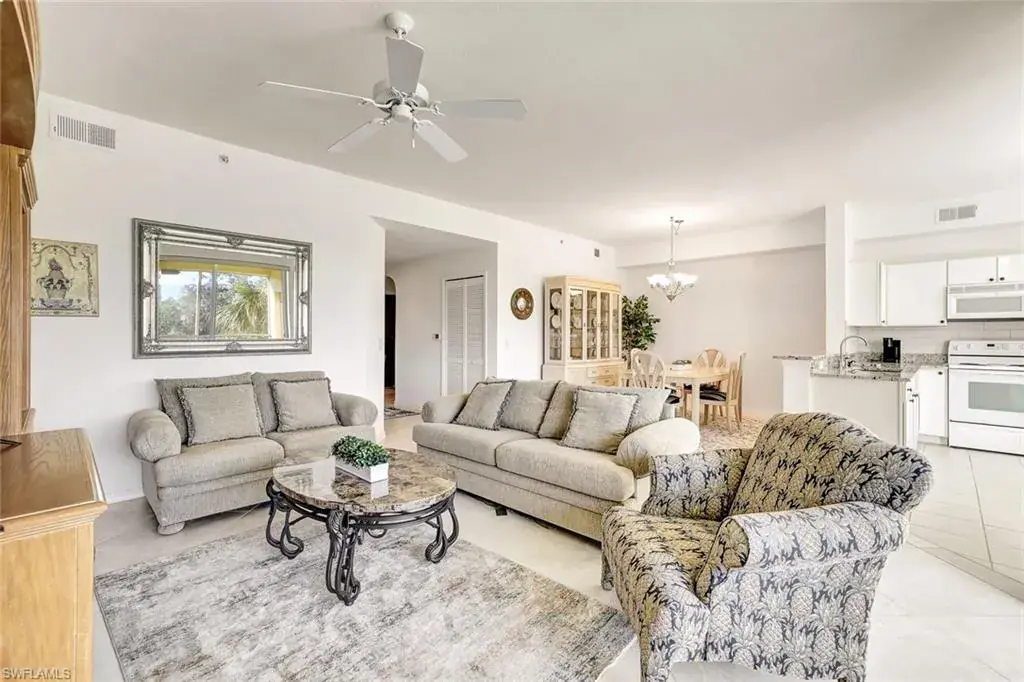 Welcome to Sterling Greens in the desirable gated golf community of Glen Eagles. This 2 bedroom/2 bathroom unit features stunningly gorgeous views of 18th hole of the golf course, lake and preserve. Open-concept living areas with spacious living room and dining area with sliding glass doors opening out to lanai seamlessly blending indoor/outdoor living. Kitchen features white shaker cabinetry and granite counters. Master suite with spacious bedroom and en-suite bathroom. Guest bedroom plus hall bathroom. Convenient laundry with side by side washer/dryer. 1-car carport parking. DEEDED SOCIAL MEMBERSHIP is included with this condo. Glen Eagle offers an 18-hole championship golf course (separate membership), 2 pools, a clubhouse with restaurant and bar, tennis, bocce, and fitness center with programs, billiard room, card rooms, meeting rooms, and an active social calendar during the season at Glen Eagle. The Restaurant consists of a dining room, a private dining room, and a full-service bar and lounge area, The 19th Hole. The Pro Shop is housed in the Clubhouse for all of your golf needs, along with a driving range and putting green, available for use from May through October. Convenient location with easy access to downtown Naples renowned for fine dining, shops and beaches. Easy access to I-75 and airport. Great rental policy!!!