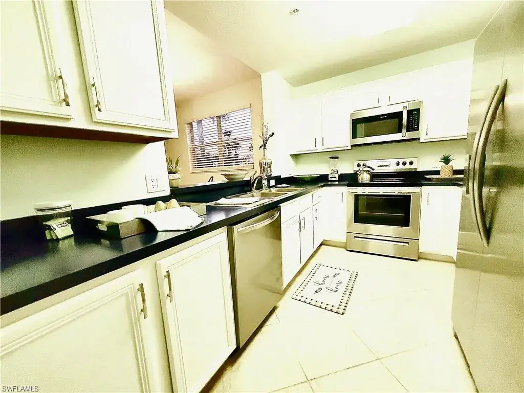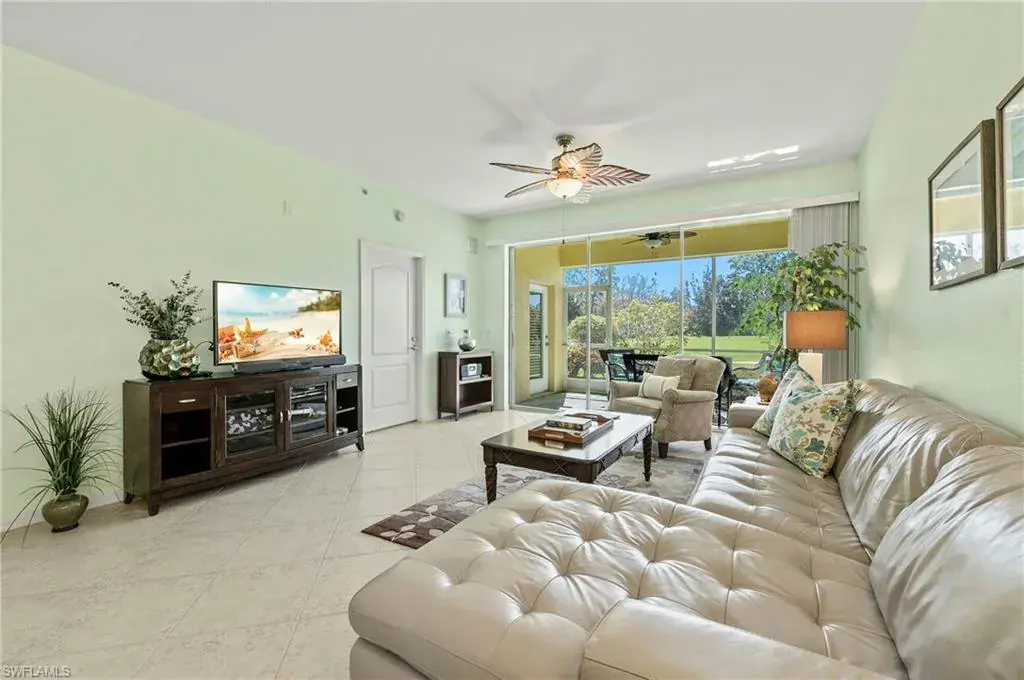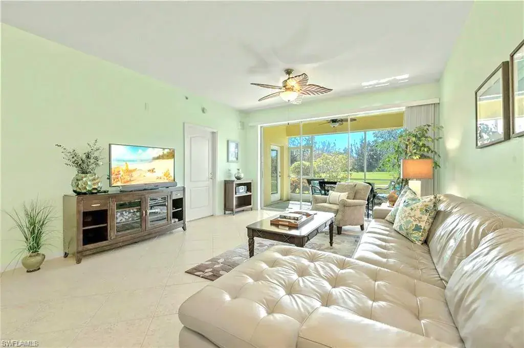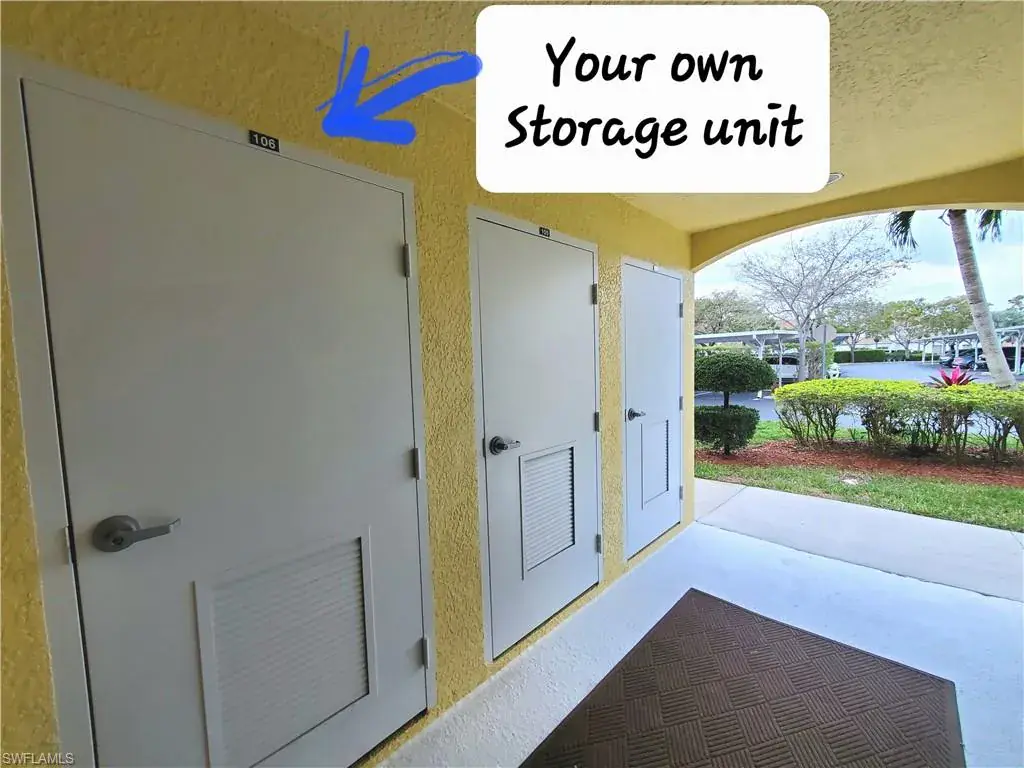 Beautiful unit with Brand NEW AC plus NEW HW JUST INSTALLED Jan 2025, with warranty, saving you big bucks $$ and giving peace of mind for years to come. Prime END-UNIT and spacious 1506 SQFT 3 BEDROOM is on the 1st floor for easy access and benefit to age in place. High ceilings, side windows and Preferred SOITHERN EXPOSURE for natural light. STAINLESS STEEL appliances in kitchen and wide opening to views. Unique 2-SIDED LANAI provides sweeping panoramic golf course views—also visible from main bedroom. Picturesque preserve just beyond the 18th fairway ensures privacy and tranquility. Move-in ready and FURNISHED TOO in price (if desired), this home lets you settle in right away—simply bring your clothes and start living a Florida lifestyle. You get your OWN STORAGE UNIT for storm shutters, bikes, golf clubs, beach chairrs amd more. Convenient COVERED PARKING is steps from your door, with a guest spots for visitors. Active, GATED community offers a wealth of amenities to enhance your lifestyle at a reasonable cost. Enjoy a refreshing swim in the community pool, BBQ, picnic, regular neighbor gatherings. Short walk to The Divot for a full gym, fitness classes, bocce, dining, bar, events. Clubhouse, dining, bar, ping pong, billiards, library, card rooms, fire pit, social events. Stay active with lit Har-Tru tennis courts. Social Membership lower fee gives you Golf May to Nov, or guest other months. Perfect as full-time, vacation home, or rent to cover costs. Just five miles from Olde Naples, renowned beaches, fine dining, world-class shopping, art, theatre. Start living your Florida dream today!