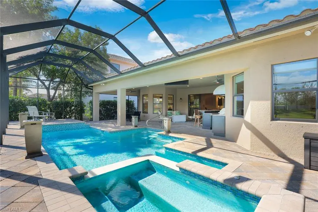 Inside, you’ll find an open-concept kitchen with a large island, stainless steel appliances, a gas range, and a wet bar perfect for hosting and family gatherings. The primary suite features dual walk-in closets and a spa-like bathroom with dual vanities, a soaking tub, and a separate walk-in shower. Step outside to your own private oasis: an extended screened lanai with a summer kitchen and bar area, ideal for dining al fresco. Enjoy the heated pool and spa, surrounded by lush landscaping and tranquil water views that create a true sense of retreat. Located in the amenity-rich gated community of StoneCreek, residents enjoy access to a modern clubhouse with a fitness center, game room, and social gathering spaces, along with pickleball, tennis, resort-style pools and spa, playgrounds, and more. Just minutes from Naples’ white-sand beaches, fine dining, and upscale shopping, this home perfectly combines elegance, comfort, and an unbeatable location.