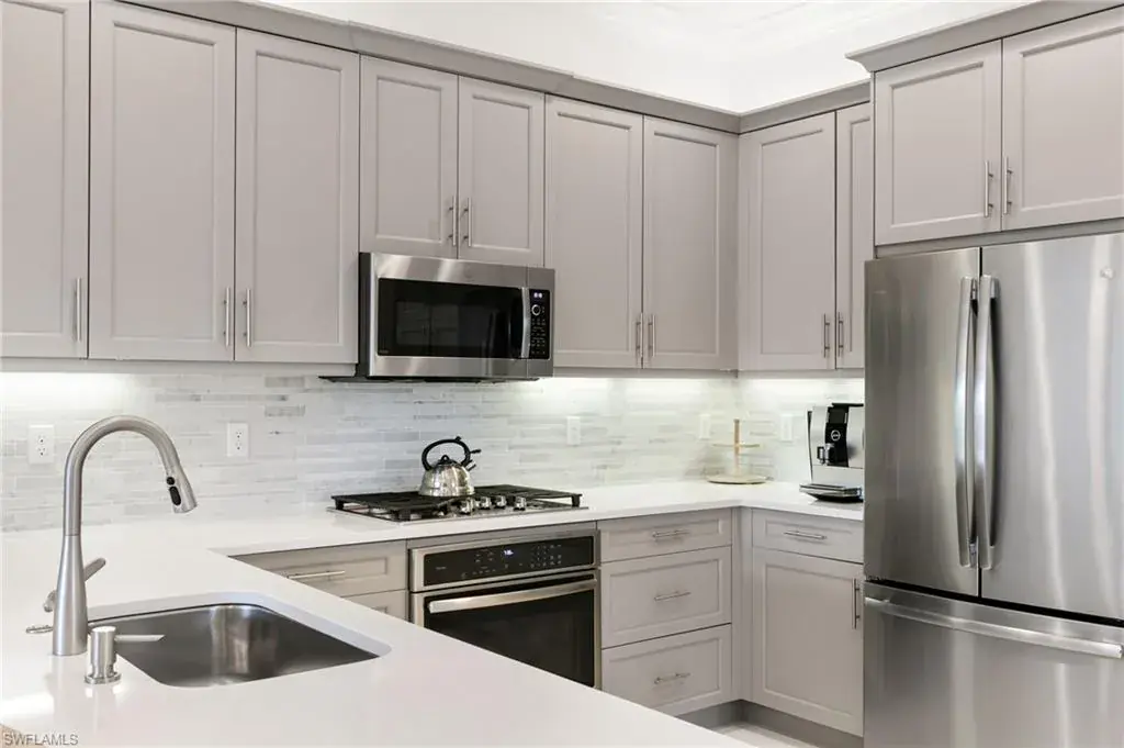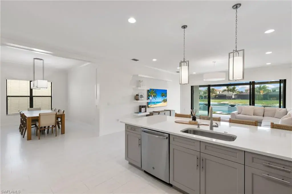 Experience luxury living at its finest in this beautifully appointed 4-bedroom, 3-bath home located in the sought-after gated CUSTOM salt water pool and spa, and tranquil lakefront views—perfect for those who love to relax and entertain in style. The gourmet kitchen features premium appliances, quartz countertops, and a spacious island ideal for entertaining. The primary suite offers peaceful lake views, a luxurious spa-like bathroom, and generous walk-in closets. Three additional bedrooms provide ample space for family and guests with new luxury vinyl flooring. The garage features new epoxy floors and overhead storage. Outdoors, enjoy your own private paradise—an expansive lanai with a stunning new pool and spa, surrounded by lush landscaping and sparkling water views. Whether you’re hosting gatherings or enjoying quiet evenings by the pool, this home offers the ultimate Florida lifestyle. Located just minutes from top-rated schools, upscale dining, shopping, and Naples’ world-famous beaches, this home combines comfort, luxury, and convenience in one exceptional package.