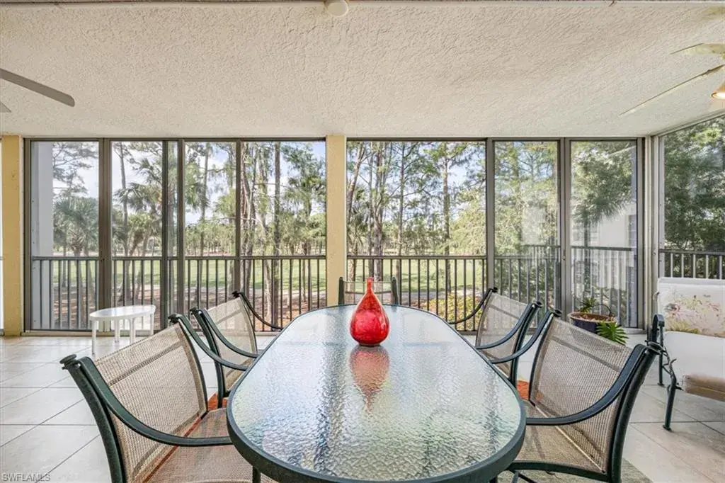 IMMEDIATE EQUITY GOLF AVAILABLE. Expansive golf course views await in this unfurnished end-unit condominium , offering three spacious bedrooms, three baths and a one-car garage with a storage unit! With its glass-enclosed lanai, this residence is ideal for year-round living, showcasing incredible square footage rivaling most homes. Buyer must purchase a membership either a Equity Golf or Social Sports Membership at closing to Eagle Creek Golf and Country Club.