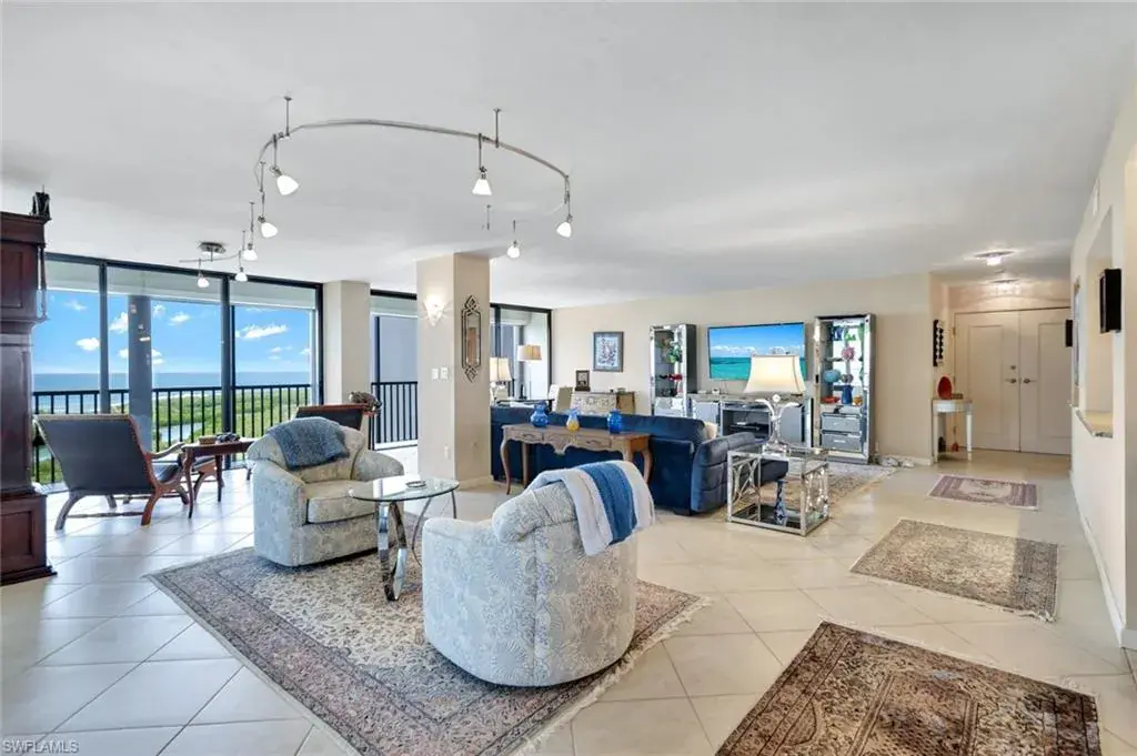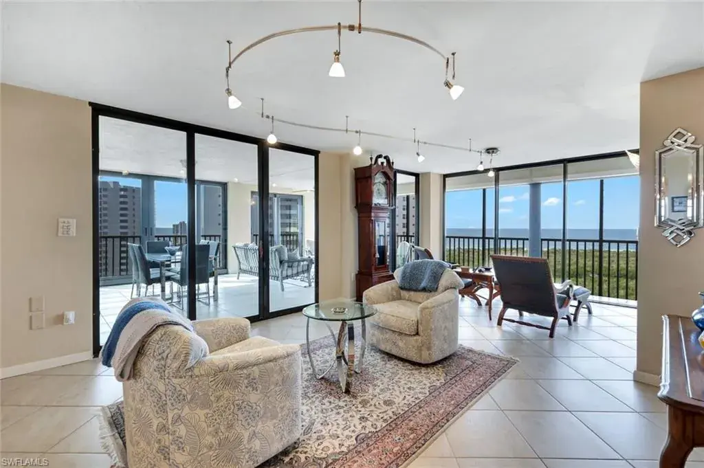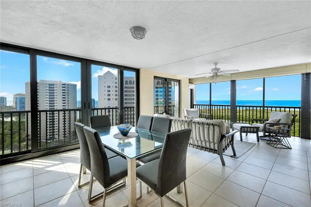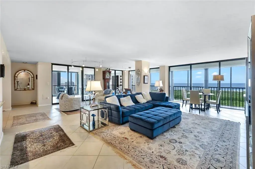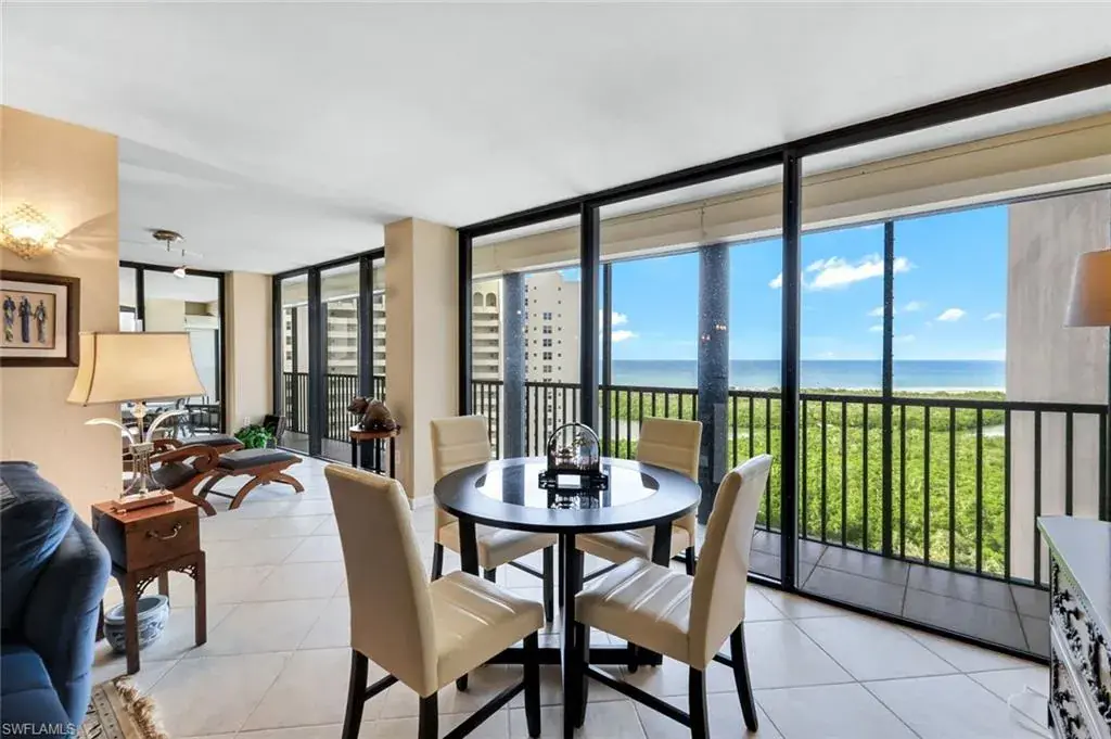 Experience coastal luxury in this stunning three-bedroom, three-bath condo boasting breathtaking views of the Gulf of Mexico from nearly every room. This exquisite property offers the perfect blend of comfort and sophistication, ideal for those seeking a serene beachfront lifestyle. Step into an open floor plan that seamlessly connects the living, dining, and kitchen areas, allowing for effortless entertaining and maximizing the spectacular gulf vistas. The gourmet kitchen features sleek solid surface countertops and a spacious breakfast bar, perfect for casual dining or hosting friends and family. Unwind in the master retreat, a true sanctuary complete with panoramic gulf views and a luxurious en-suite bathroom. Indulge in the oversized shower, boasting multiple showerheads for a spa-like experience. Two additional well-appointed bedrooms and bathrooms provide ample space for guests or family members. The crowning jewel of this coastal haven is the expansive screened lanai, offering multiple seating areas for relaxation and al fresco dining. Watch mesmerizing sunsets, feel the gentle sea breeze, and listen to the soothing sounds of the waves from this private outdoor oasis. With its prime location and upscale amenities, this Gulf-front condo presents an unparalleled opportunity to own a slice of paradise. Whether as a permanent residence or a luxurious vacation retreat, this property promises to deliver the ultimate Florida coastal living experience. Stratford boasts one the the largest swimming pools in Pelican Bay, a tennis and pickleball court, newly renovated exercise room, Hot tub/spa. Walk to Artis-Naples, Waterside Shops. Hop on the beach shuttle at your back door taking to both South Beach and Marker 36 beach restaurants. A five minute walk to Artis-Naples, Baker Art Gallery, Waterside Shops featuring such brands a Hermes, Tiffany, Lululemon, Apple Store plus fun restaurants Pelican Bay has 18 tennis courts and soon will have 20 pickle ball courts. Kayaking and community fitness center plus miles and miles of hiking a biking trails.  SEE REMARKS