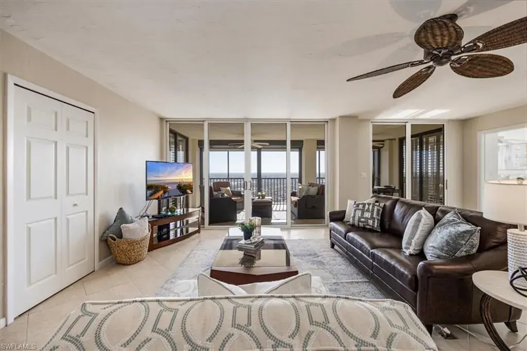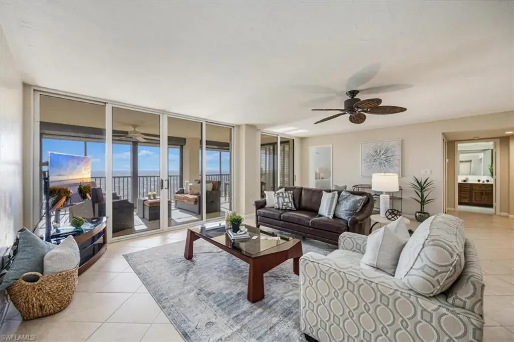 Situated on the 20th floor of the 5-star Stratford at Pelican Bay, this residence offers ample room for entertainment and privacy with its split floorplan.  The layout of the home offers flexibility with a large kitchen that flows seamlessly to both the great room and dining area.  Both bedrooms are spacious with new carpets, oversized walk-in closets, and sliding doors leading to the large, screened lanai overlooking the beautiful city of Naples.  Homeowners at the Stratford share superior on-site amenities including a resort pool & spa area, tennis, pickleball, a fire pit, a grilling area, fitness room, community room, underground parking, and a tram stop right outside the building. Known for its miles of immaculate beach, coastal mangrove forests and breathtaking nature paths, Pelican Bay is Naples’ premier mixed-use beachfront community, offering its members a preeminent lifestyle that cannot be found elsewhere.  Pelican Bay sets the bar when it comes to its luxury living with exclusive amenities including private beachfront restaurants, beach services, tennis courts, full-service fitness center, community center, canoes and kayaks, and coming soon Pickleball!