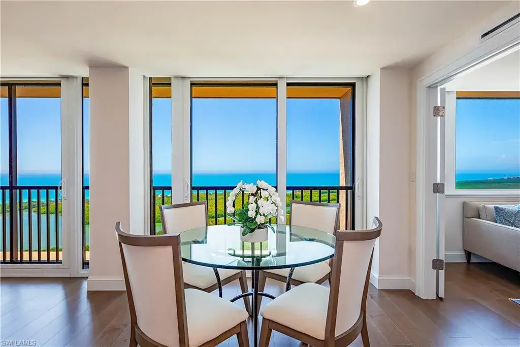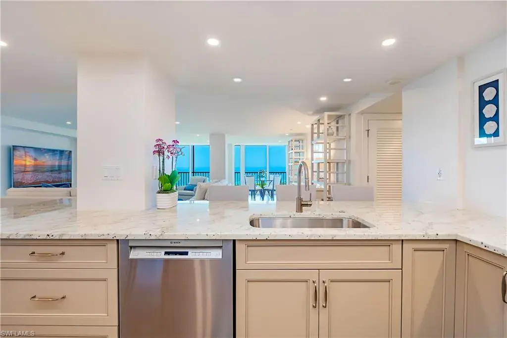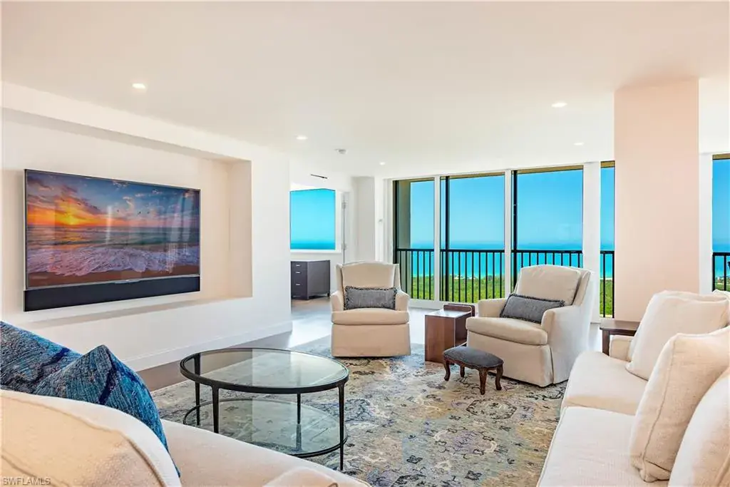 Discover unparalleled elegance in The Stratford at Pelican Bay, one of Naples’ most coveted high-rise communities. This exquisite 21st-floor residence spans over 2,000 square feet and features a spacious open floor plan designed for effortless entertaining and everyday comfort. Enjoy sweeping Gulf views and breathtaking sunsets from the living room, dining area, and both bedrooms. Boasting 2 bedrooms and 2 bathrooms, this sky-high sanctuary is flooded with natural light, creating a warm and inviting atmosphere throughout. The gourmet kitchen is equipped with a generous breakfast bar and top-of-the-line appliances, ideal for both casual dining and inspired culinary creations. The primary suite serves as a serene retreat with a large walk-in closet, dual vanities, a soaking tub, and a luxurious walk-in shower. Additional highlights include impact-resistant glass, a deeded parking space, and extra storage. Residents of The Stratford enjoy an array of on-site amenities such as a resort-style pool and spa, tennis and pickleball courts, a social room, and a well-equipped fitness center. As part of the prestigious Pelican Bay community, owners also have access to private beach tram service, beachfront dining with full attendant service, kayaking, nature trails, wellness programs, and an active tennis program. Ideally situated just moments from the upscale shopping and dining of Waterside Shops, the cultural experiences of Artis–Naples, and the vibrant offerings of Mercato and Fifth Avenue South, this exceptional property offers a rare opportunity to experience the very best of Gulf-front living.