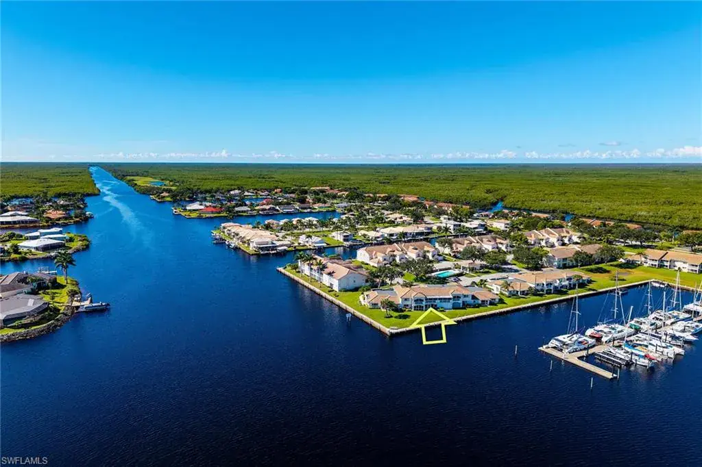 The first-floor lanai provides direct walk-out access to your assigned boat slip, making days on the water effortless. Safety and peace of mind come with hurricane impact windows and shutters throughout.