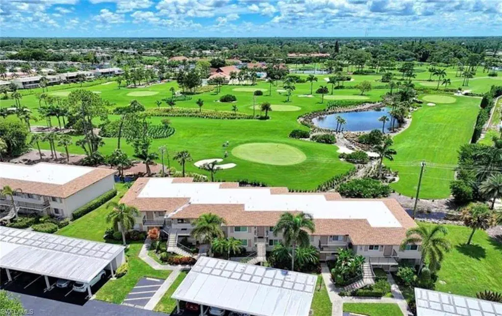Welcome to this lovely second floor 2 bedroom/2 bathroom condo with a spacious lanai offering spectacular golf course views! Thoughtful updates throughout include laminate flooring throughout .Sliding doors to the lanai from the living area and main bedroom fill this condo with light, and allow for the best of indoor-outdoor living. The kitchen opens to the living area, perfect for entertaining and enjoying the beautiful views. Enjoy the convenience of in-unit laundry, as well as a main bathroom with the sink separate from the toilet and shower. In the living area, where an alcove /minibar perfect for entertaining. A beautiful community pool is just steps away from your front door, and a carport with storage area is included with the unit. Great location near US-41, downtown Naples, world class dining, shopping, entertainment, beautiful white-sand SW Florida beaches are only 4 miles away from . Convenient community located 3 miles to 5th Ave, 3rd Street and the beaches of Olde Naples! Community pool near the front door and nice-sized lockable storage unit for bikes, beach gear of other storage Walking distance to Walmart, Publix and Bealls.