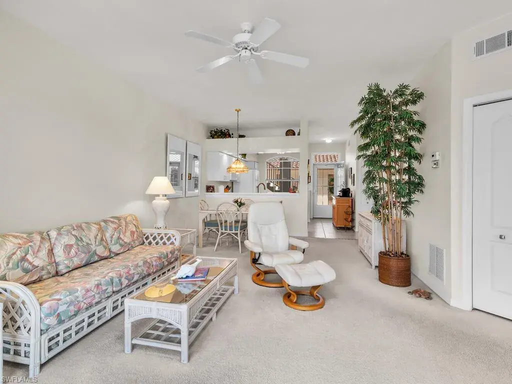 Discover the perfect blend of serene living and Florida lifestyle in this 2 bedroom, 2 bathroom first-floor waterfront condo. This meticulously maintained unit is move-in ready and being offered fully furnished, so you can start enjoying your new home right away! Step onto the screened-in lanai, equipped with an electric roll-down shutter for peace of mind, and soak in unobstructed views of the water and mangroves, guaranteed to remain unchanged thanks to the surrounding protected preserve. Watch dolphins, manatees, and tarpon rolling in the water from the comfort of your lanai – a true nature lover’s paradise! This property also includes a detached single-car garage and a boat slip, making it a boater’s dream with easy access to the Gulf of Mexico. The unit is conveniently located near the community pool and your boat slip, offering ease and accessibility for daily enjoyment. With manual shutters throughout and a beautifully maintained interior, this home is designed for effortless living. Situated just 20 minutes from Marco Island, 30 minutes from downtown Naples, and less than 15 minutes from a Publix supermarket, you’ll love the proximity to amenities while enjoying the tranquility of this waterfront community. Start living your best Florida life today at 206 Newport Dr. unit 805!