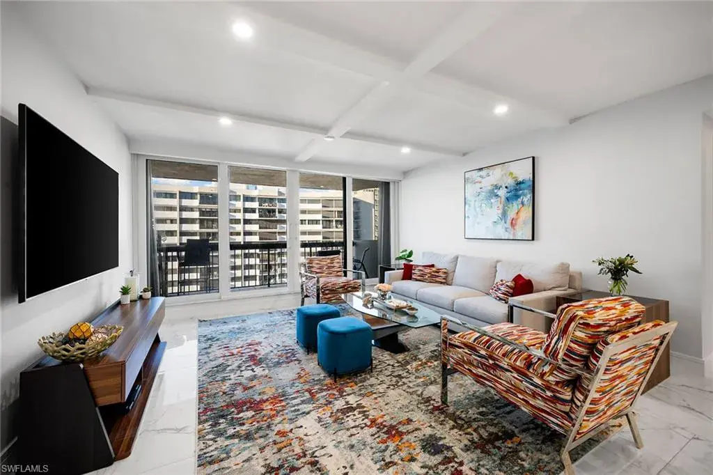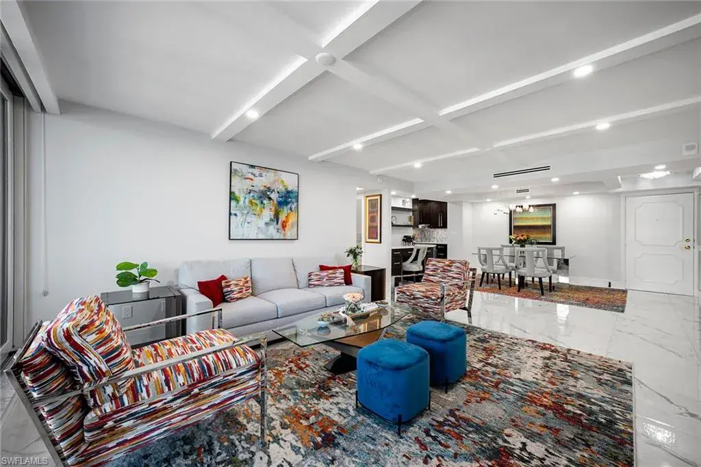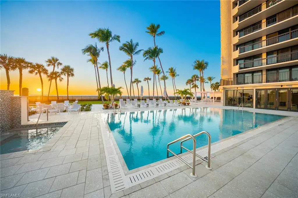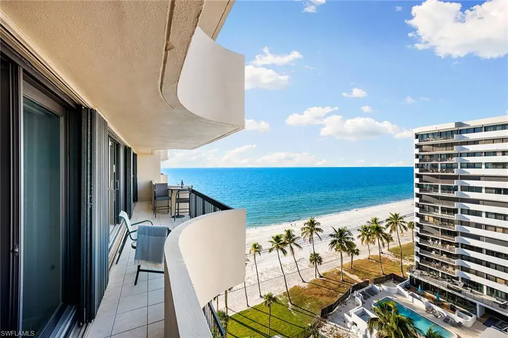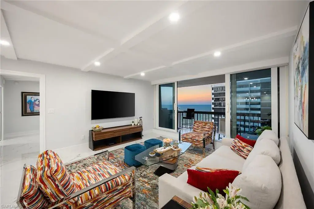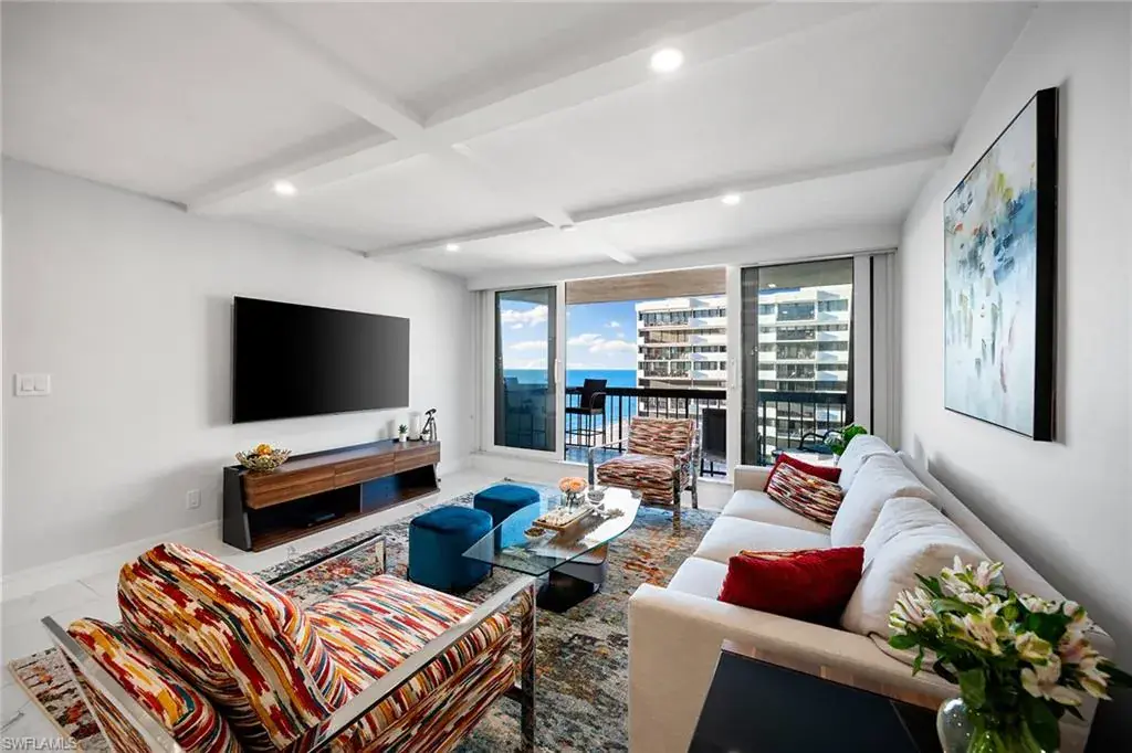 Fully renovated Park Shore two-bedroom, two-bath condominium updated from top to bottom, including electrical and plumbing. Light, bright and coastal chic, this residence welcomes you with impact sliders that open to soothing surf sounds and wide Gulf vistas. Every room spills onto the private balcony, offering breathtaking views and gentle breezes. The Surfsedge building has undergone a complete 2024-25 transformation with a stunning new lobby, two beautifully redesigned guest suites, contemporary fitness room, stylish social room, a fire pit and resort-style pool/spa/deck with Gulf-front grilling. Major structural upgrades include all-new electrical systems, building generator, updated plumbing, gated parking, new fob-secure entry, 24-hour security, new elevators, manager offices and mailroom. Residents enjoy private beach access, extra storage and bike storage. Positioned on Park Shore Beach and just a short distance to Venetian Village, minutes to Waterside Shops and downtown Naples. A must-see coastal gem.