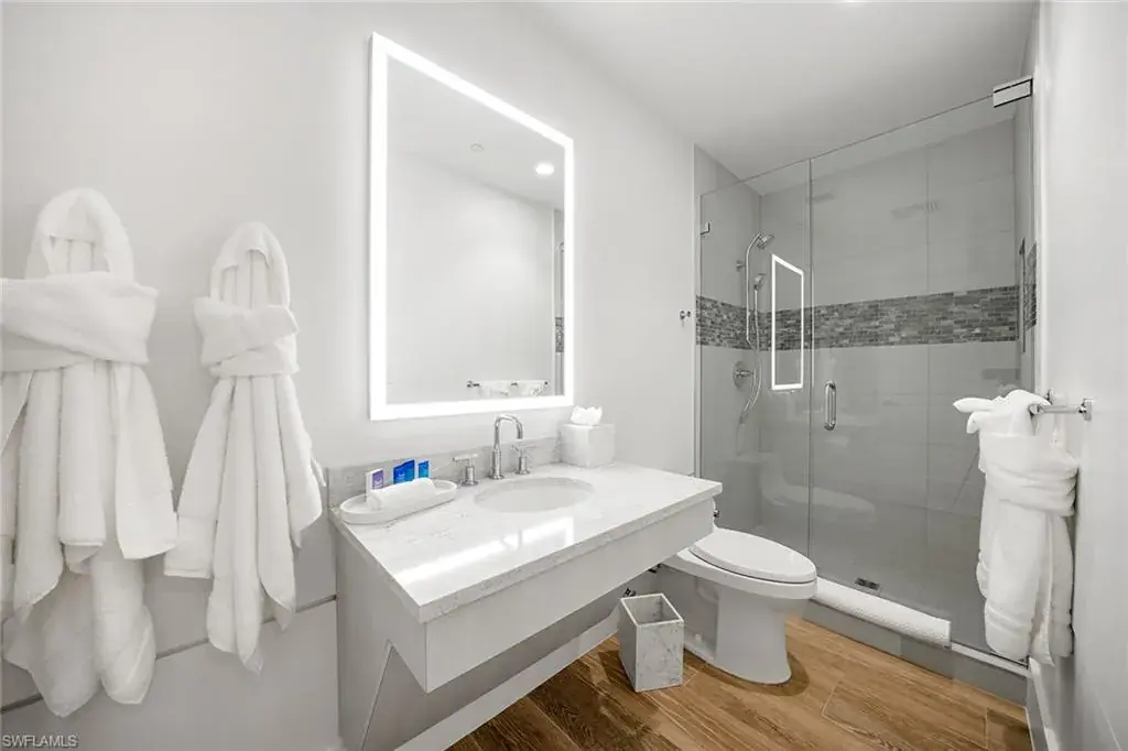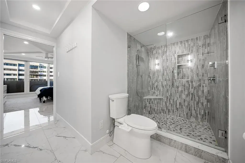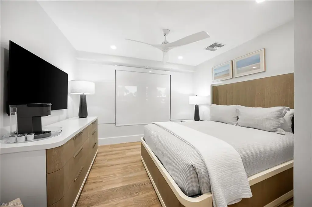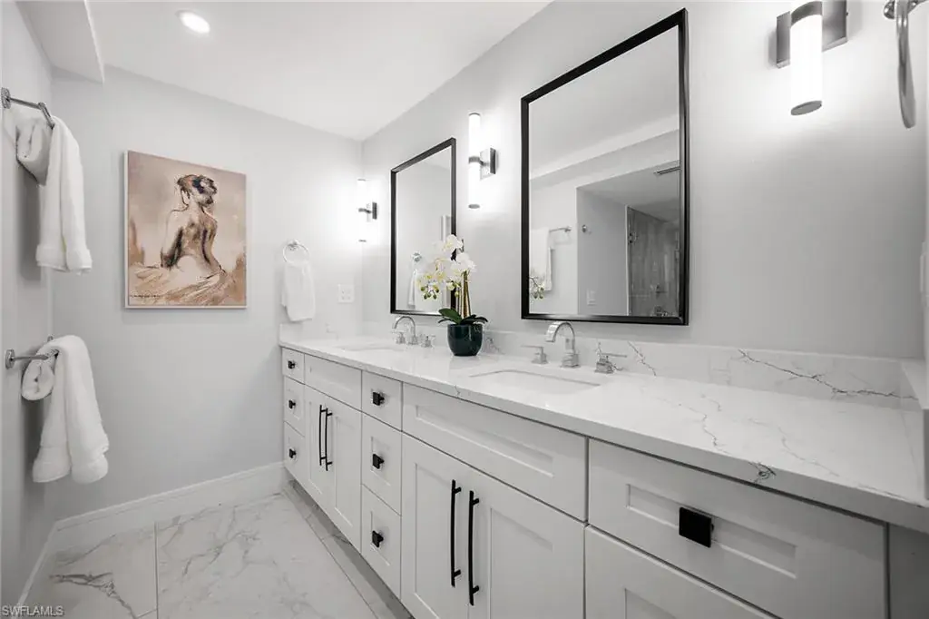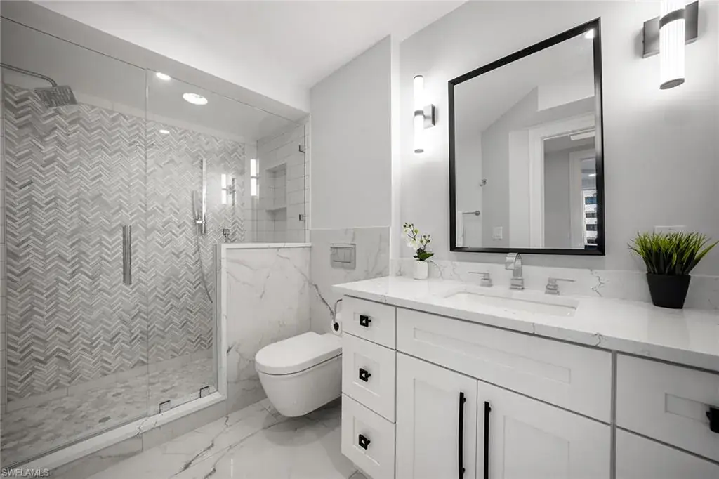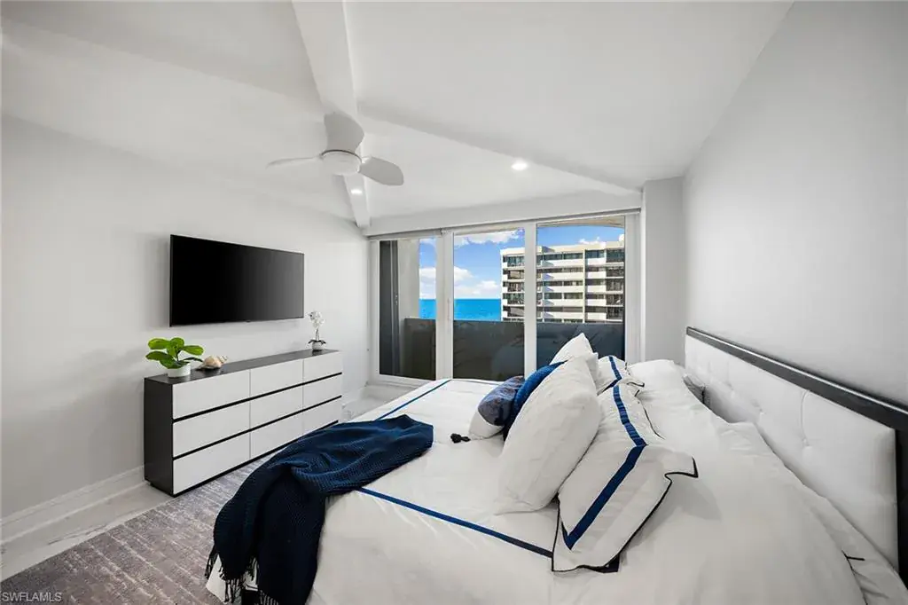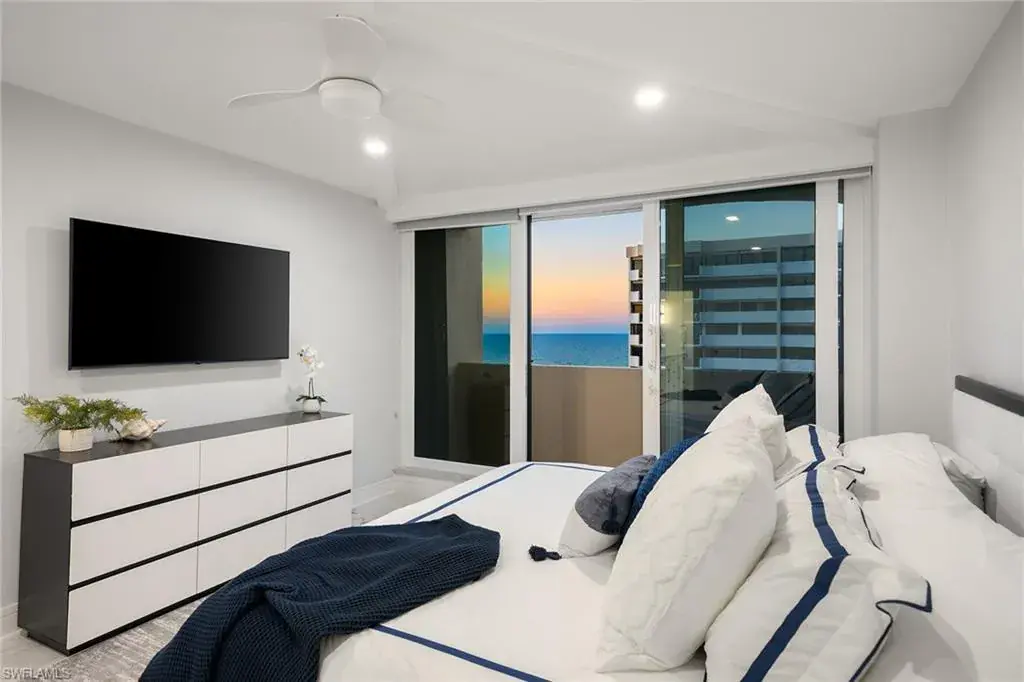 Fully renovated Park Shore two-bedroom, two-bath condominium updated from top to bottom, including electrical and plumbing. Light, bright and coastal chic, this residence welcomes you with impact sliders that open to soothing surf sounds and wide Gulf vistas. Every room spills onto the private balcony, offering breathtaking views and gentle breezes. The Surfsedge building has undergone a complete 2024-25 transformation with a stunning new lobby, two beautifully redesigned guest suites, contemporary fitness room, stylish social room, a fire pit and resort-style pool/spa/deck with Gulf-front grilling. Major structural upgrades include all-new electrical systems, building generator, updated plumbing, gated parking, new fob-secure entry, 24-hour security, new elevators, manager offices and mailroom. Residents enjoy private beach access, extra storage and bike storage. Positioned on Park Shore Beach and just a short distance to Venetian Village, minutes to Waterside Shops and downtown Naples. A must-see coastal gem.